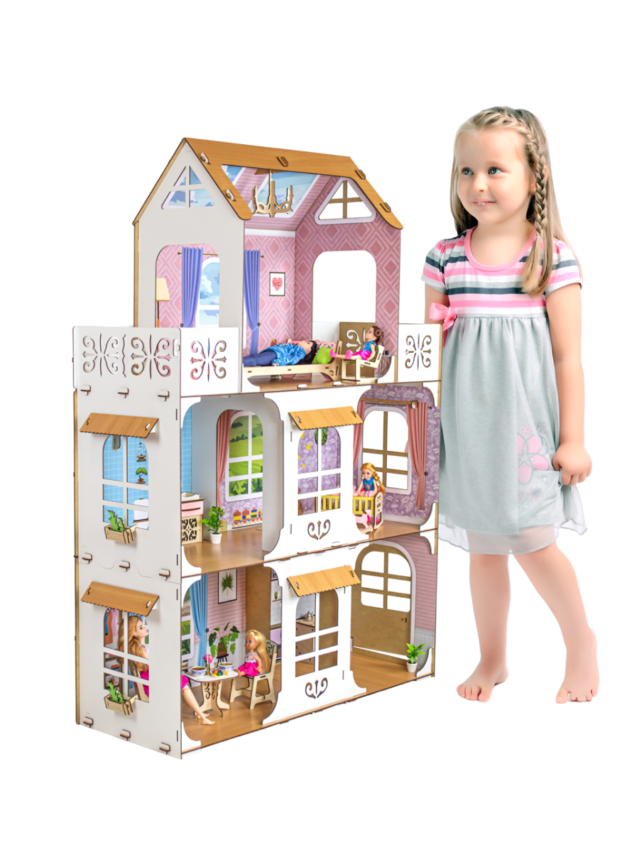 10 цен на Деревянный кукольный домик с мебелью для Барби / Большой домик для кукол