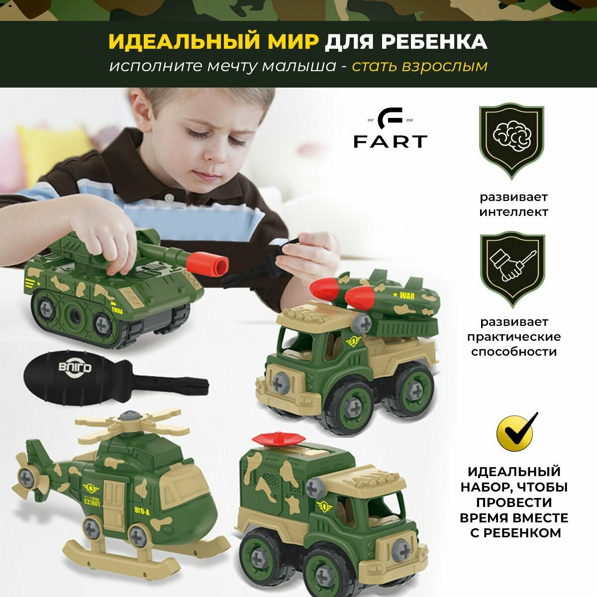 10 цен на Набор разборных машинок "Военная Спецтехника" с отвёрткой.