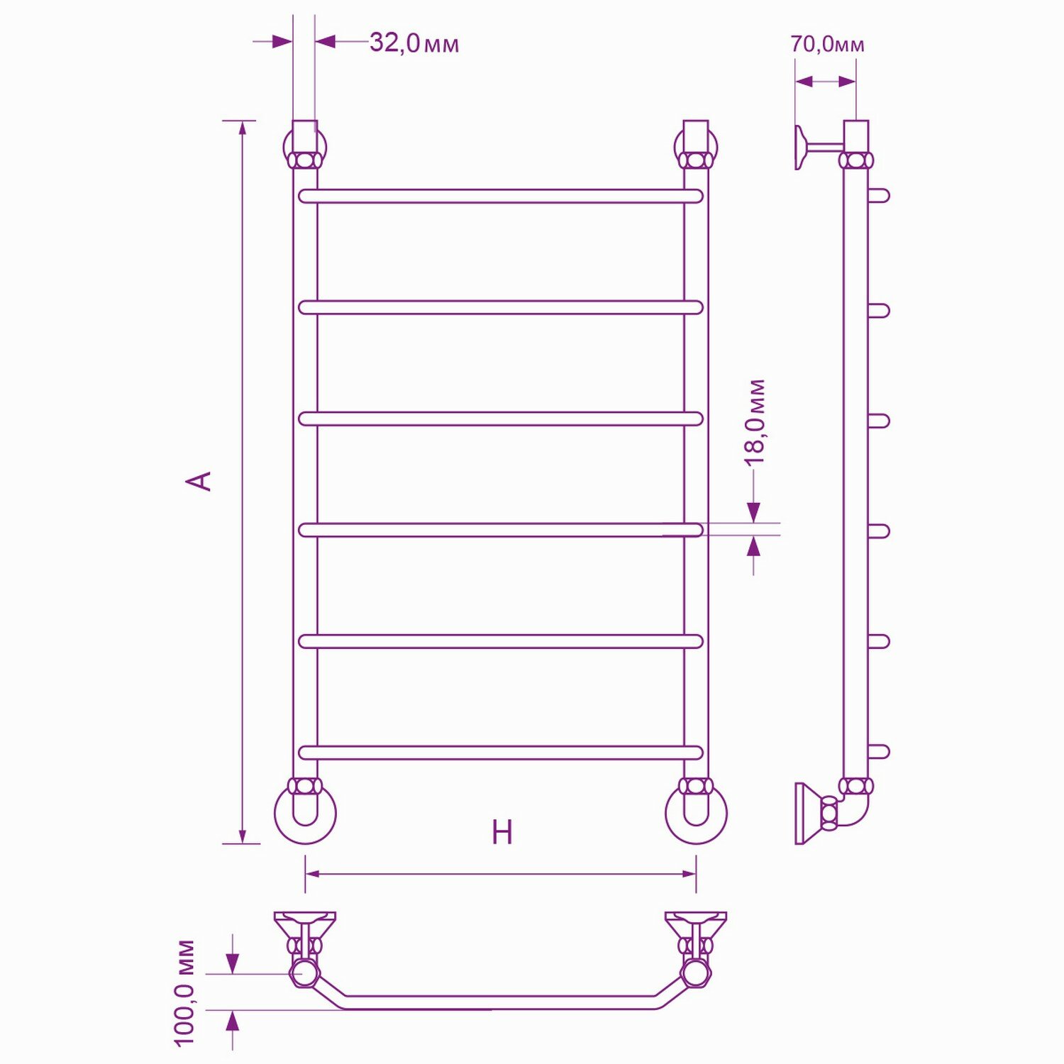 Полотенцесушитель ZOX ЛЦ 80х50 1'' 5 перекл трапеция нижнее подкл (крепеж, без монт комп) В6 информация: