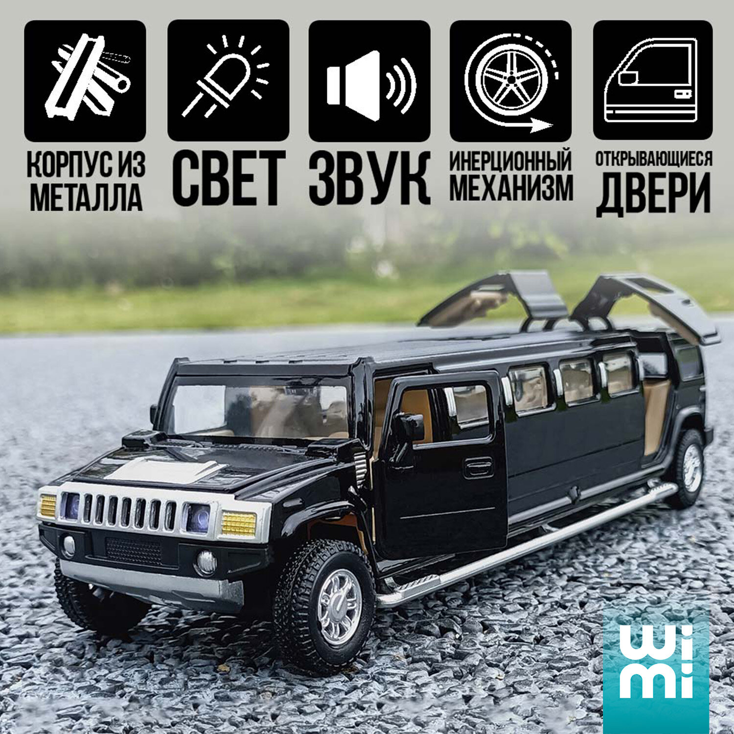 Отзывы на Машинка металлическая WiMi лимузин Hummer H2, 1:32 черный, световые и звуковые эффекты