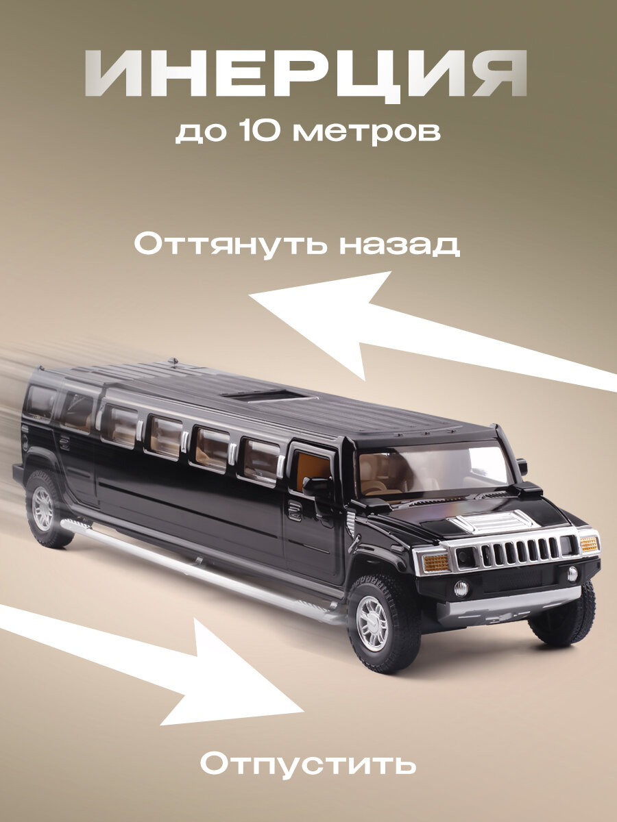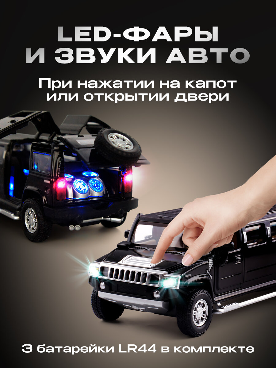Машинка металлическая WiMi лимузин Hummer H2, 1:32 черный, световые и звуковые эффекты информация:
