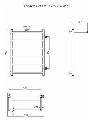 Водяной полотенцесушитель Тругор аспект ПМ серия 1 с полкой 50х80x50 прав информация: