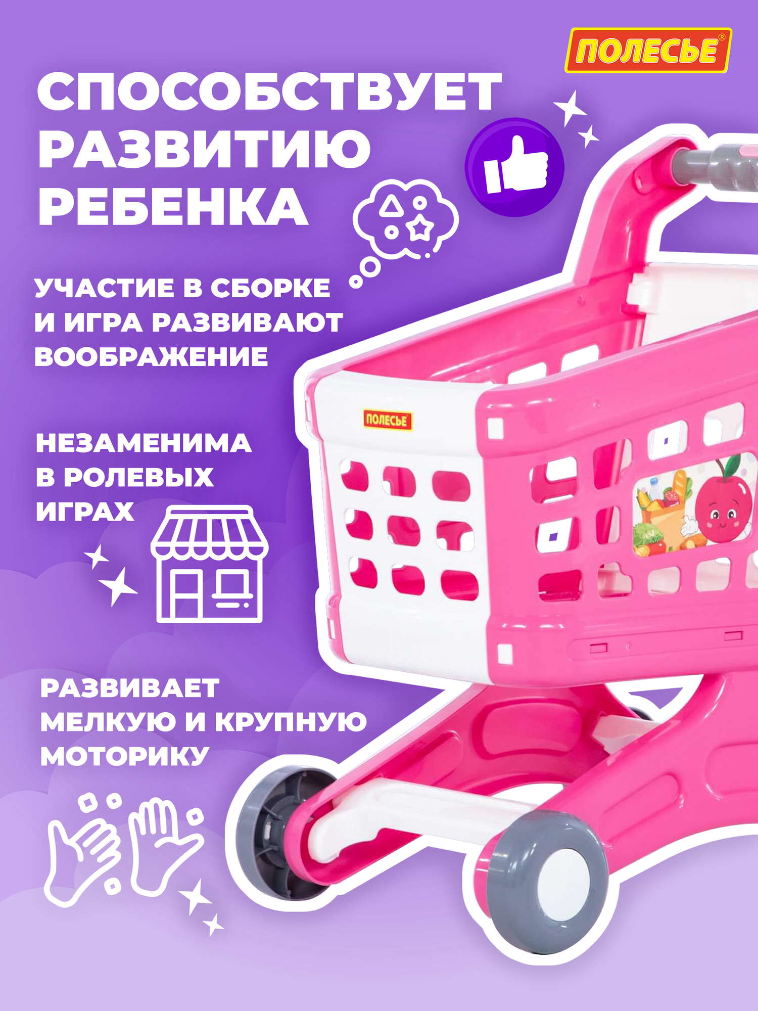 Тележка для продуктов супермаркета игрушечная розовая полесье информация: