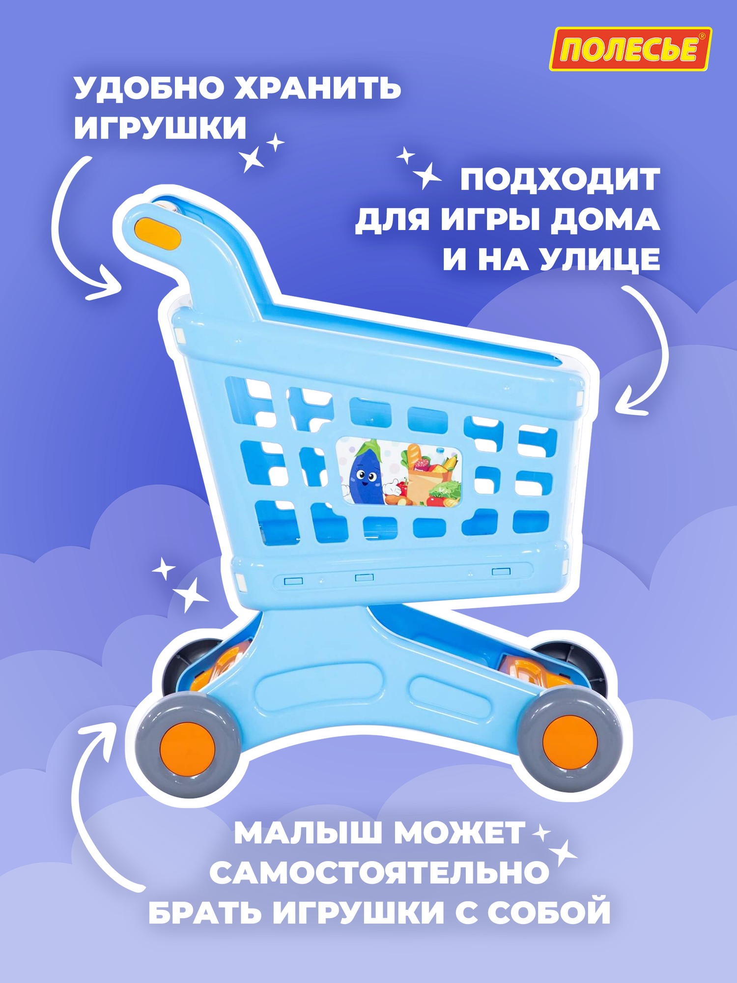 Тележка для продуктов супермаркета голубая игрушечная полесье информация:
