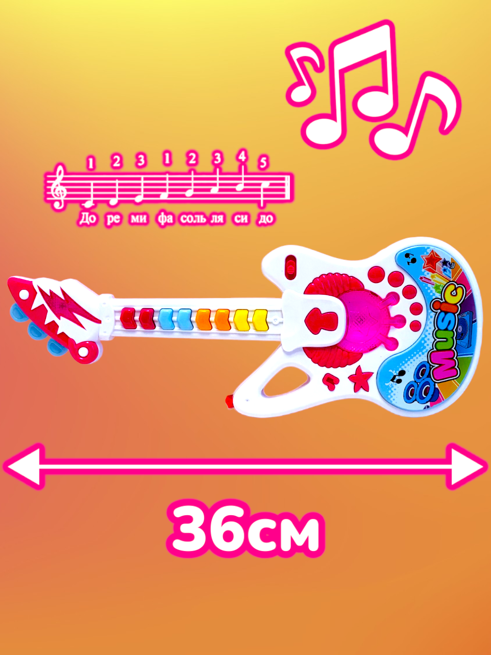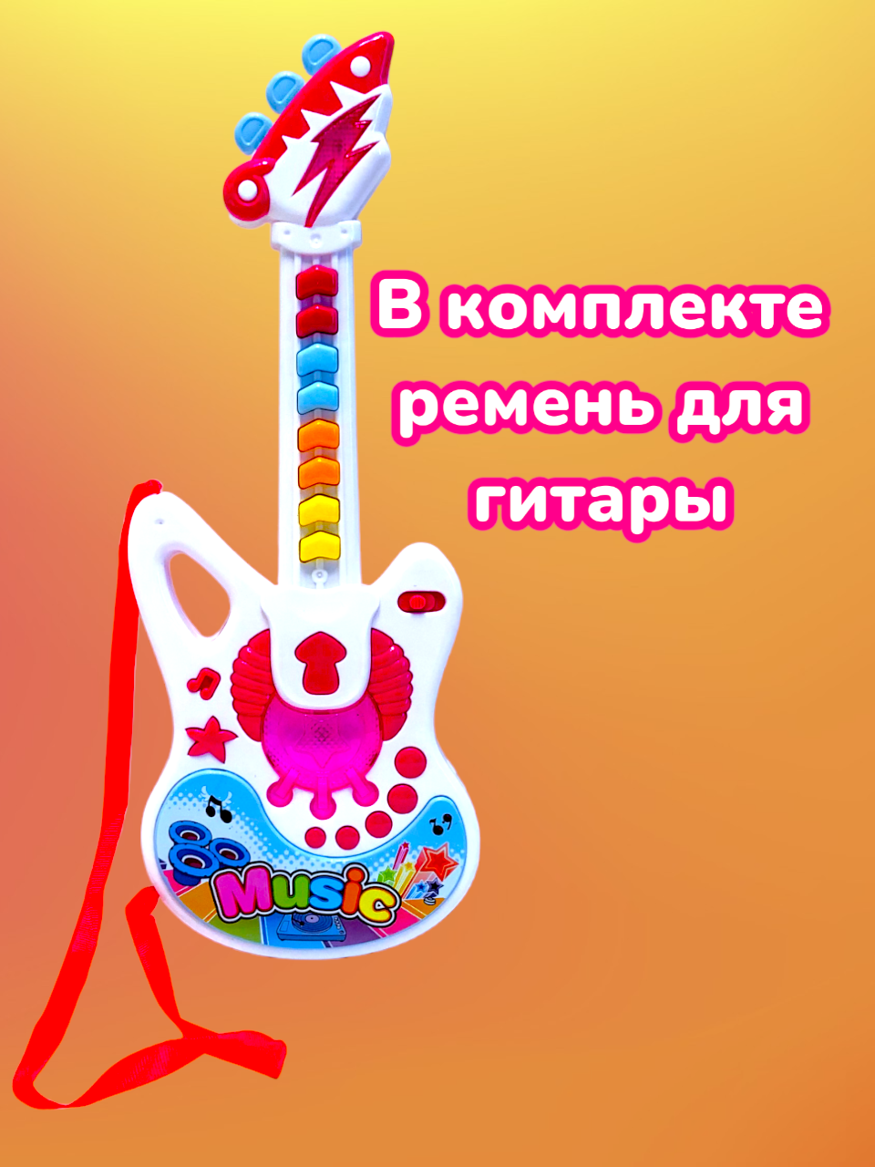 10 цен на Гитара на батарейках детская Бело-Розовая