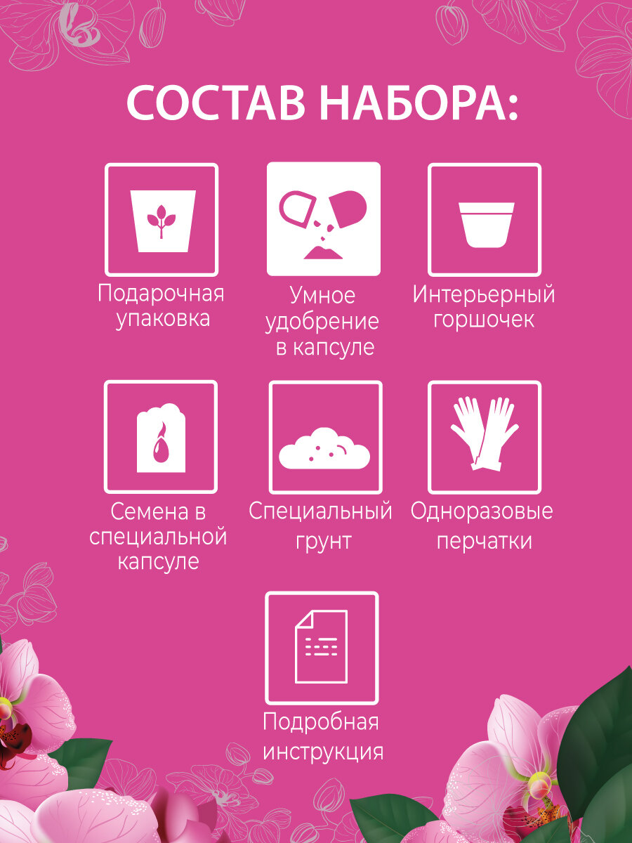 | Комплектация | подарочная коробка, пластиковый горшок на 1 литр с прикорневым поливом, семена, грунт, удобрение, пара одноразовых перчаток |