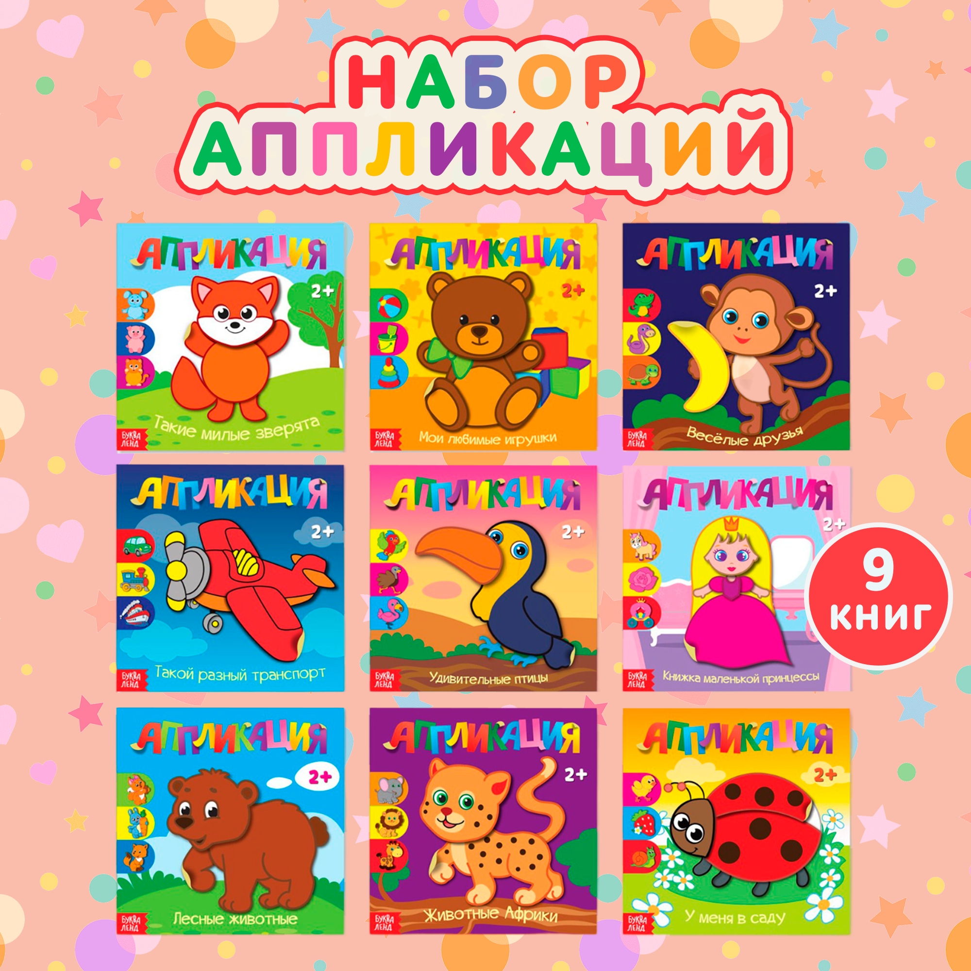 Набор книг "Для самых маленьких", буква-ленд, для аппликаций, 9 штук по 20 страниц, для детей и малышей информация: