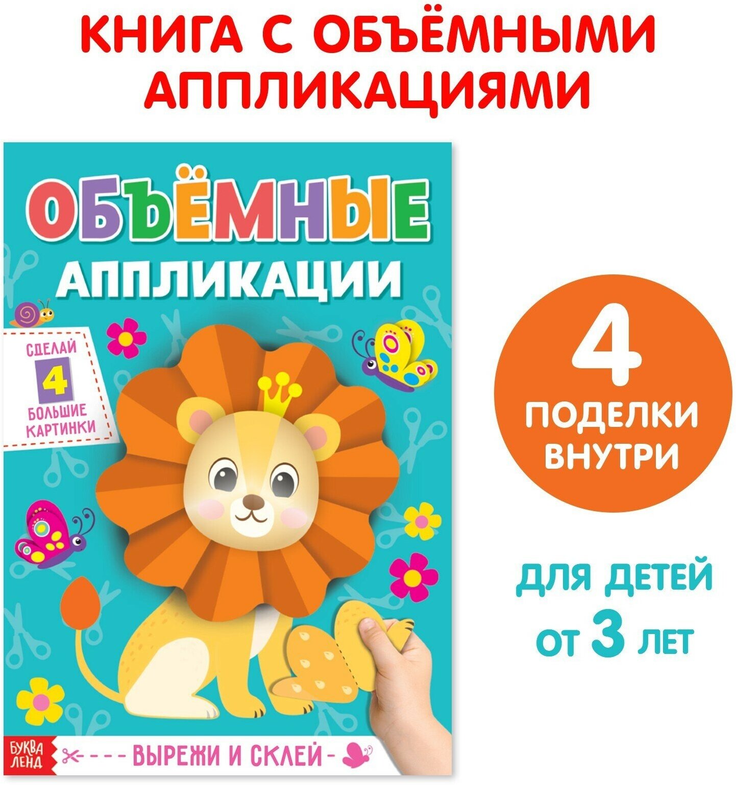 Аппликации объёмные «Львёнок», 20 стр., формат А4 информация: