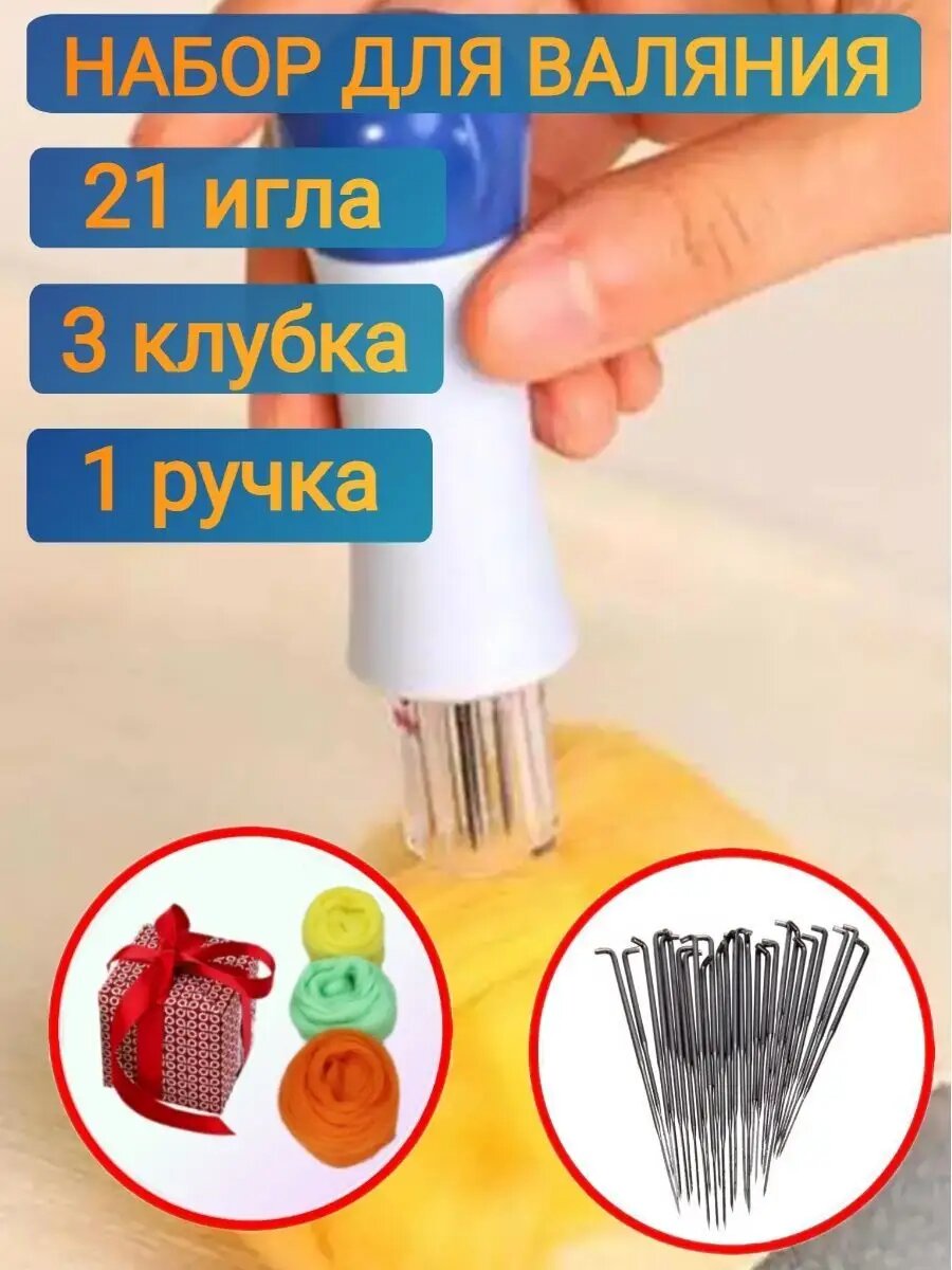 | Комплектация | Ручка 1 штука; Иглы финишные 21 штук; Шерсть 3 клубка; |