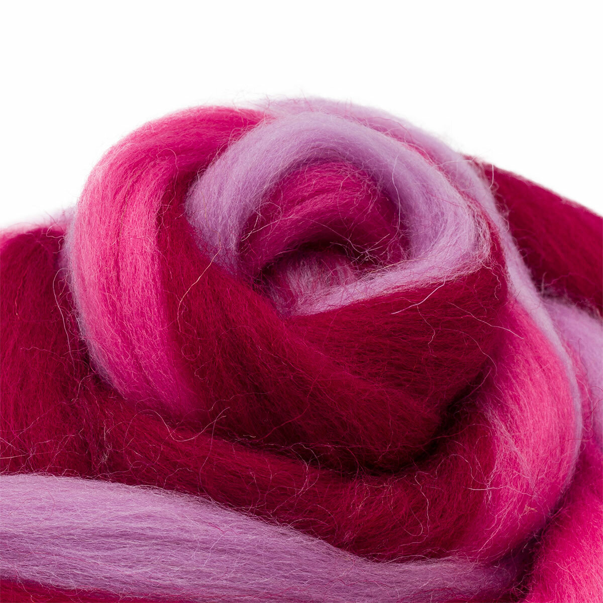 Шерсть для валяния полутонкая 100%, мультиколор, 100 г (1510 мультиколор - винный, мальва, светлая фиалка) информация: