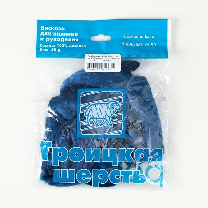 Шерсть для валяния ТРО Гребенная лента (вискоза) 50г цв.0100 королевский синий 266 ₽