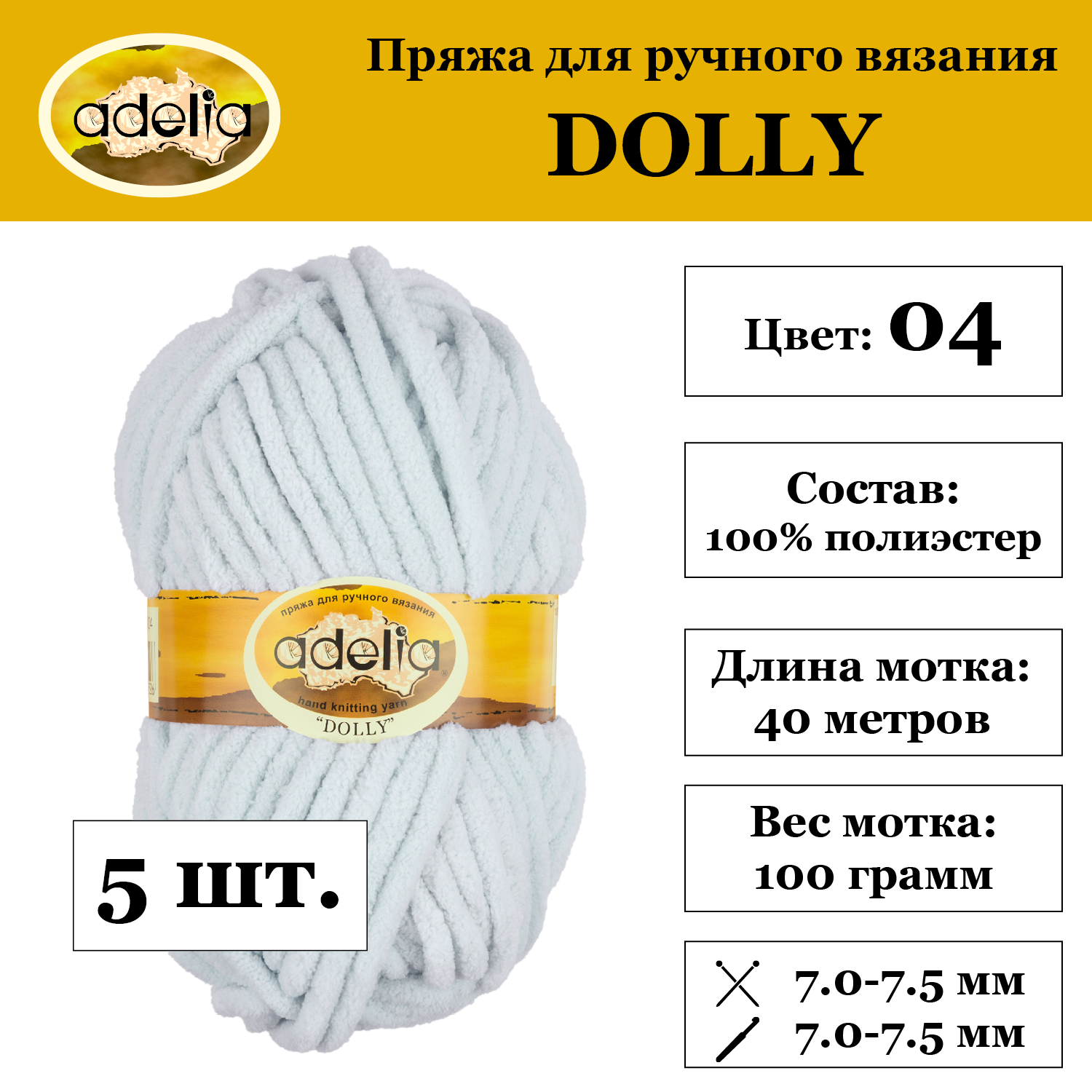 Набор пряжи Adelia Dolly, 100% полиэстер, 5*100 г, 40+/-3 м, №04, светлый голубой