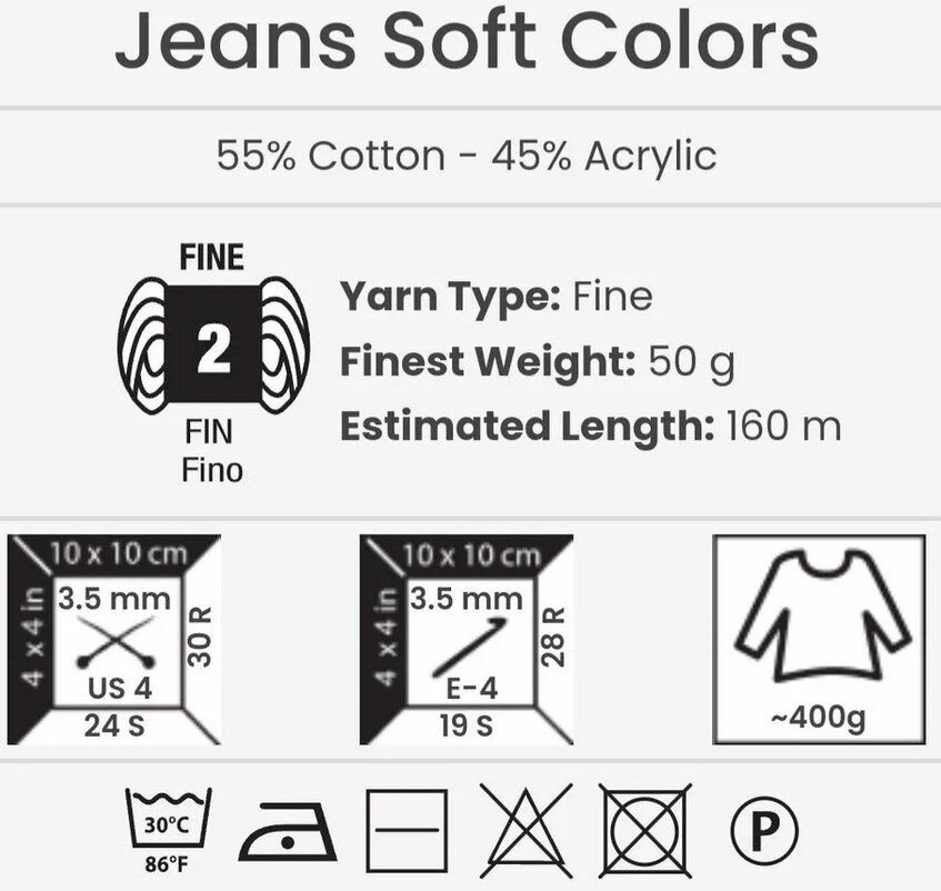10 цен на Пряжа "Jeans Soft Colors" цв. 6205 2 шт. 55% хлопок 45% полиакрил 160м/50гр "YarnArt"