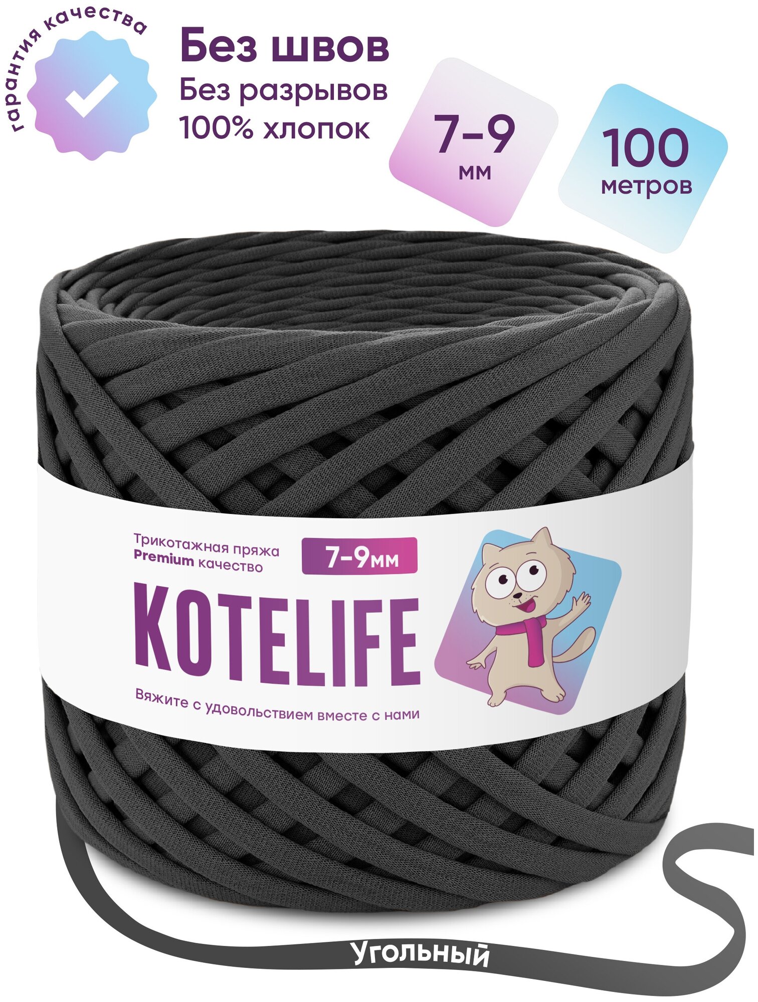Пряжа трикотажная для ручного вязания из хлопка, 7-9мм / 100м / KOTELIFE, цвет Угольный информация: