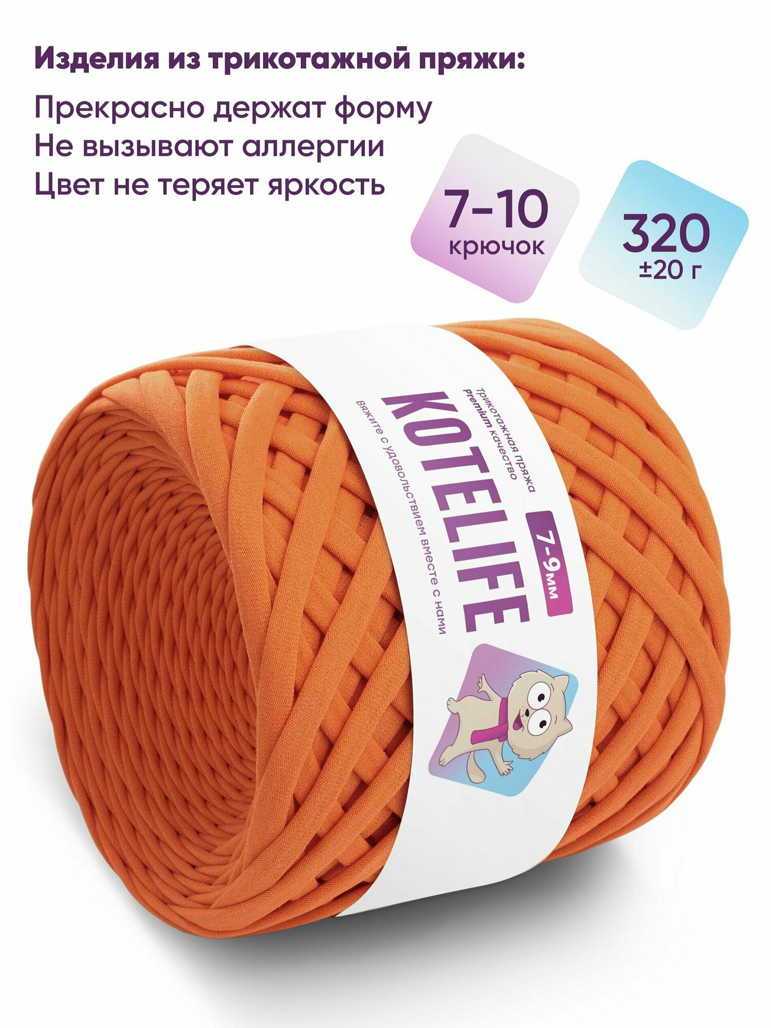 Пряжа трикотажная для ручного вязания из хлопка, 7-9мм / 100м / KOTELIFE, цвет Манго