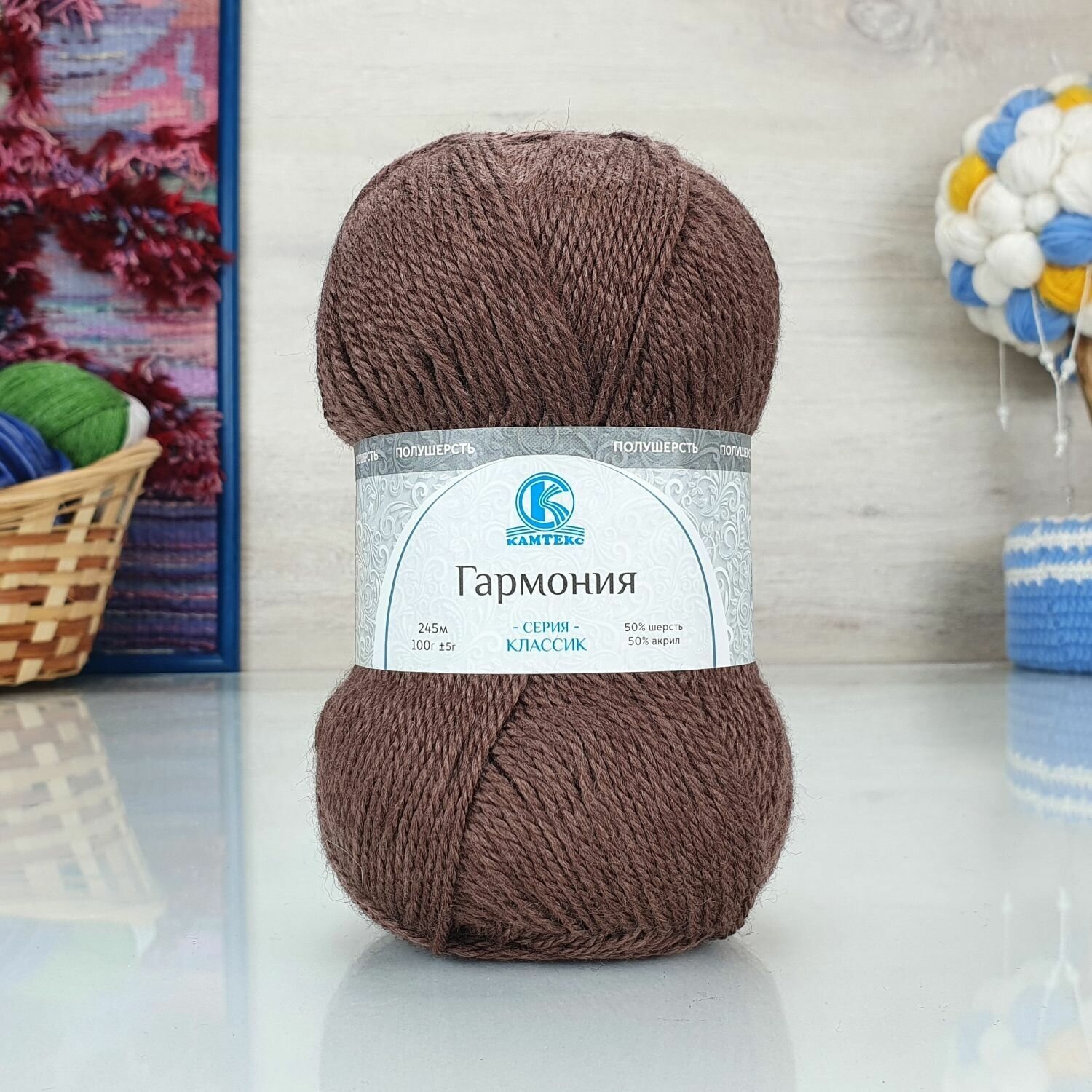 Пряжа Камтекс Гармония шоколад (063), 50%акрил/50%импортная полутонкая шерсть, 245м, 100г, 1шт