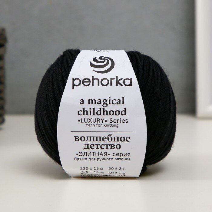 Пряжа Пехорка 'Волшебное детство' 50г, 220м (100% импортная шерсть австралийский меринос) (02 черный), 5 мотков информация: