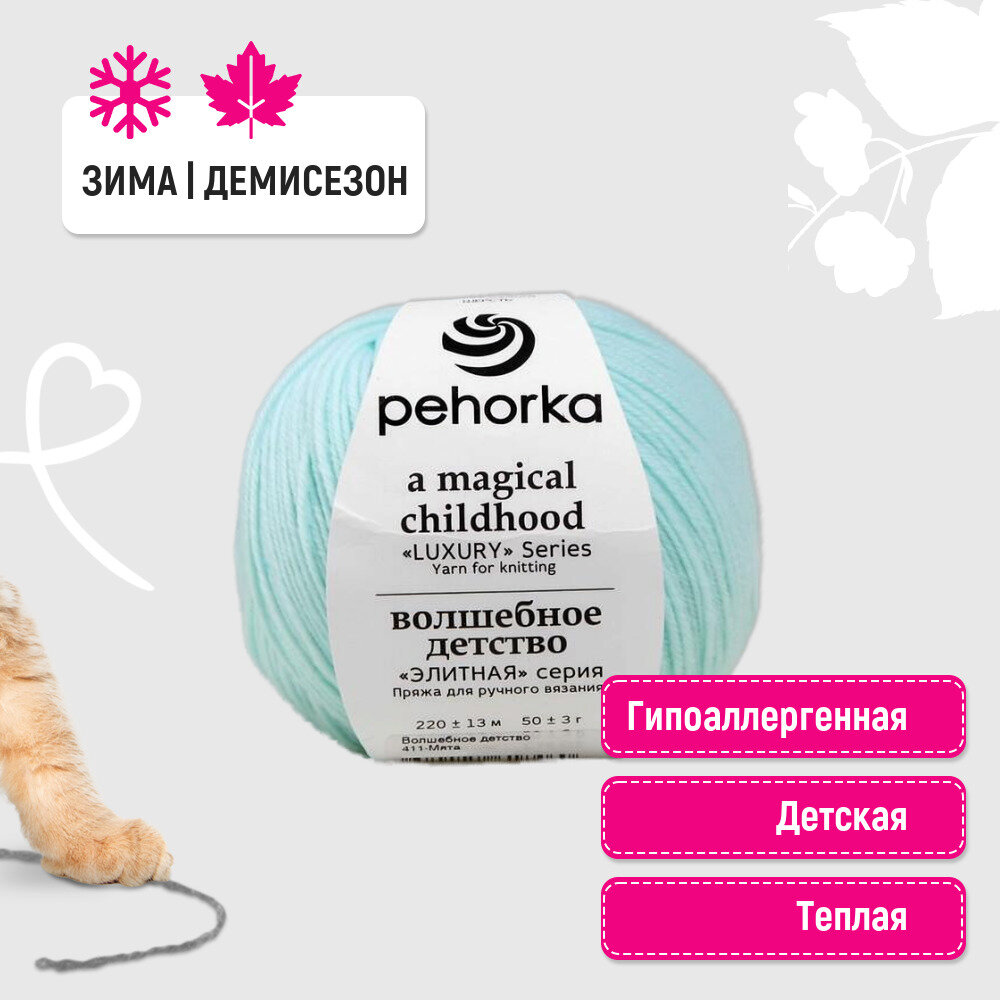 Пряжа Пехорка волшебное детство 411 мята (5 мотков) 1 590 ₽