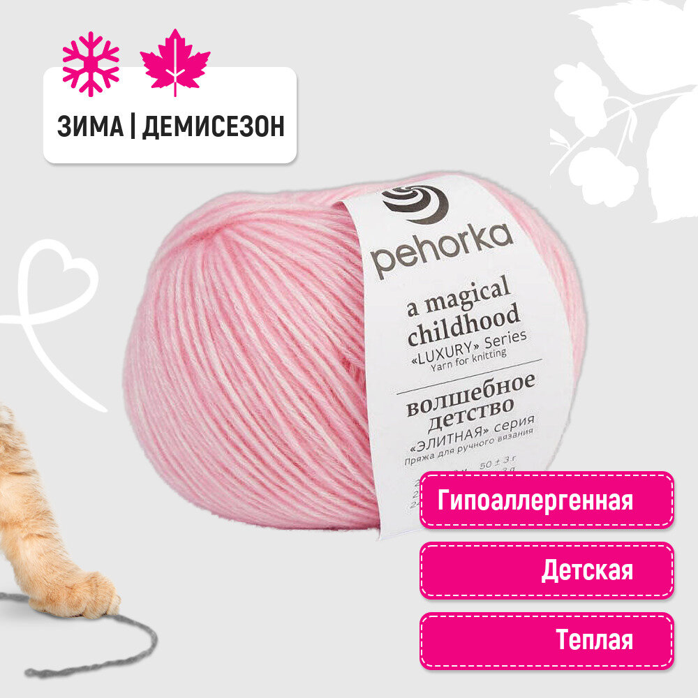 Пряжа Пехорка Волшебное детство 180 светлая бегония (50г/220м, упаковка 5 мотков) 1 670 ₽