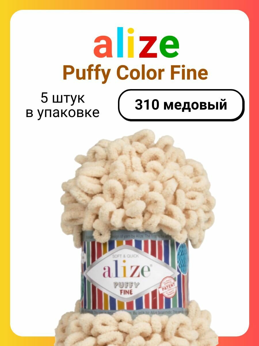 10 цен на Пряжа для вязания Alize Puffy Fine 310 медовый, 100 г, 14 м, 5 штук
