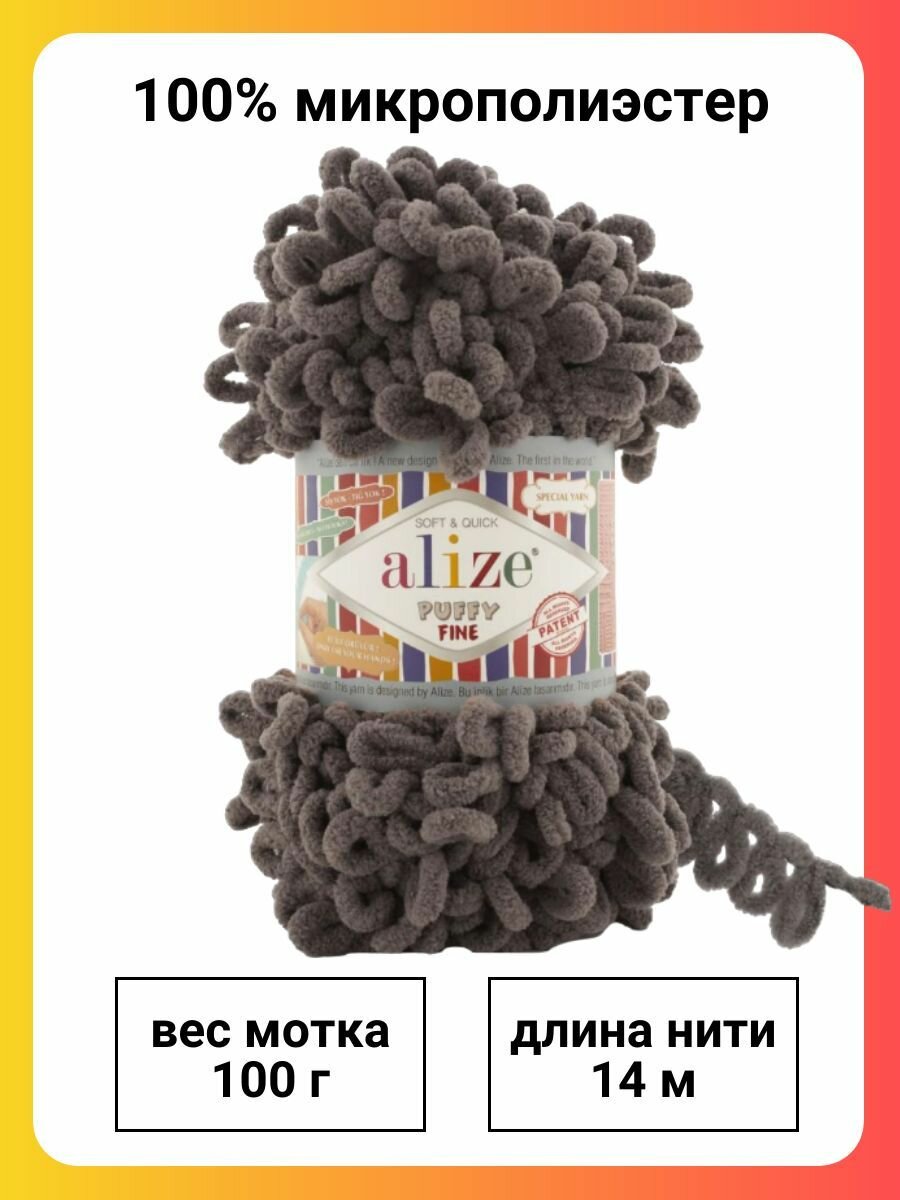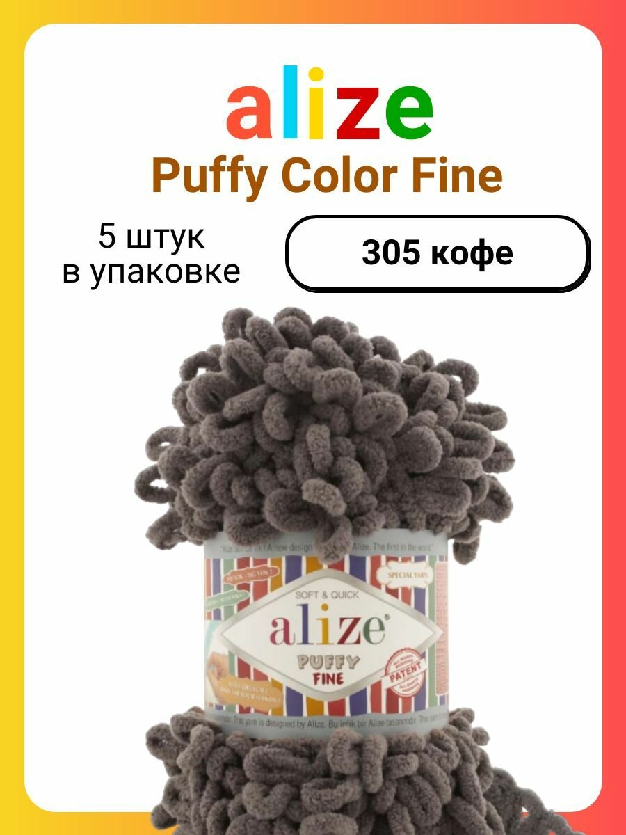 Пряжа для вязания Alize Puffy Fine 305 кофе, 100 г, 14 м, 5 штук информация: