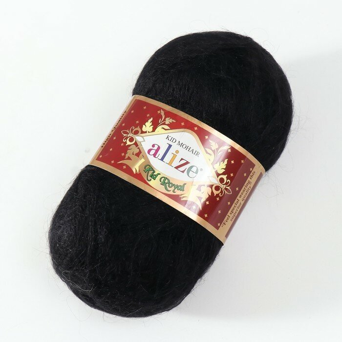 Пряжа для вязания Alize 'Kid royal', 50г, 500м (62% кид мохер, 38% полиамид), ТУ (60 черный), 5 мотков