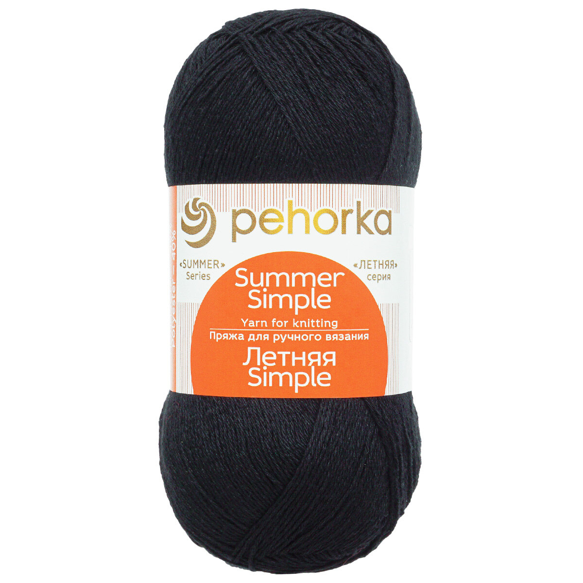Пряжа Летняя Simple Пехорка, черный - 02, 60% хлопок, 40% полиэстер, 5 мотков, 100 г., 500 м. 731 ₽