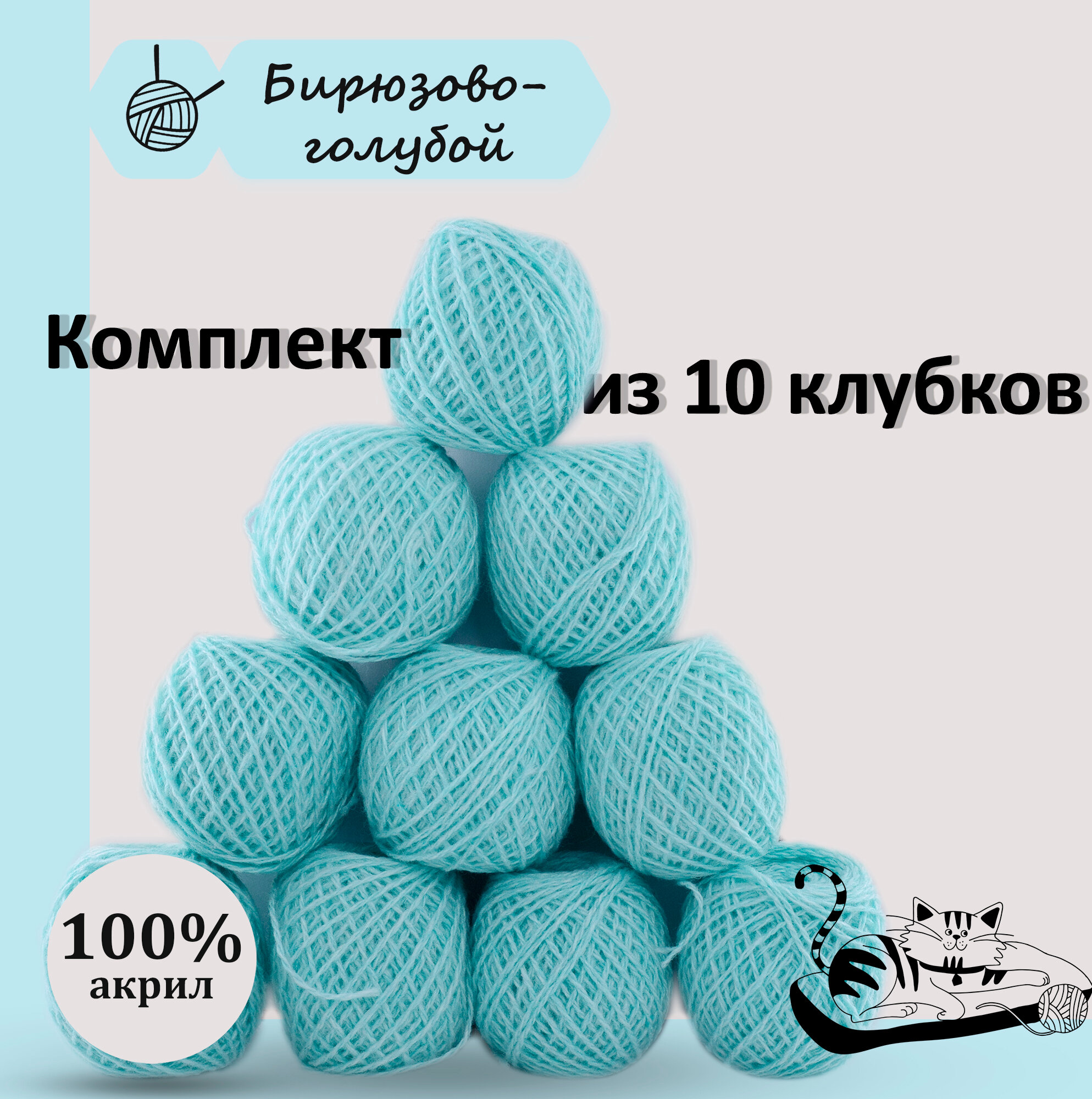 10 цен на Пряжа для ручного вязания в клубочках. Набор 10 штук. Моток 40 грамм / 70 метров. Бирюзово - голубой