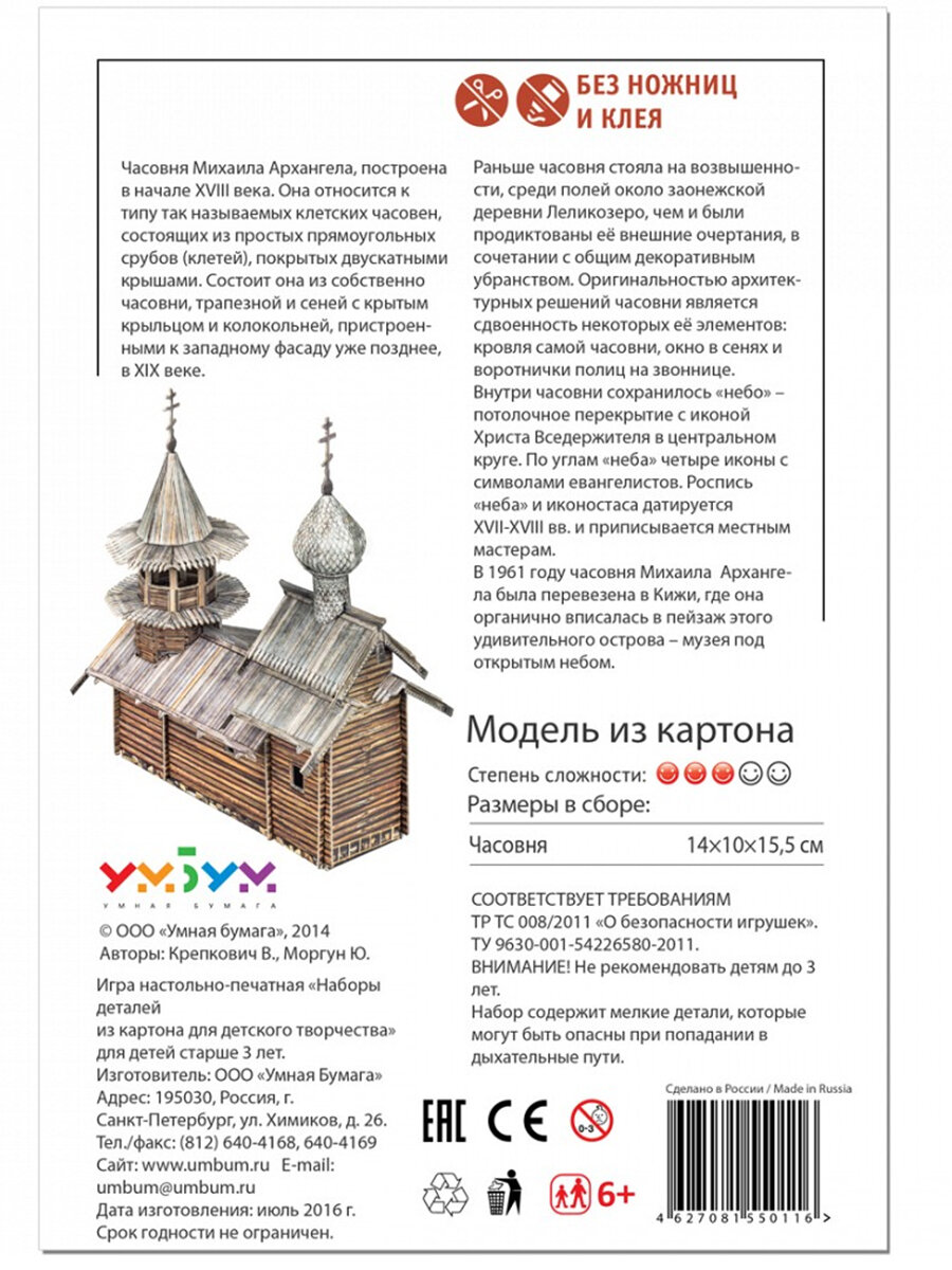 Сборная модель из картона 3D Часовня Михаила Архангела (о. Кижи) Масштабная Архитектура информация: