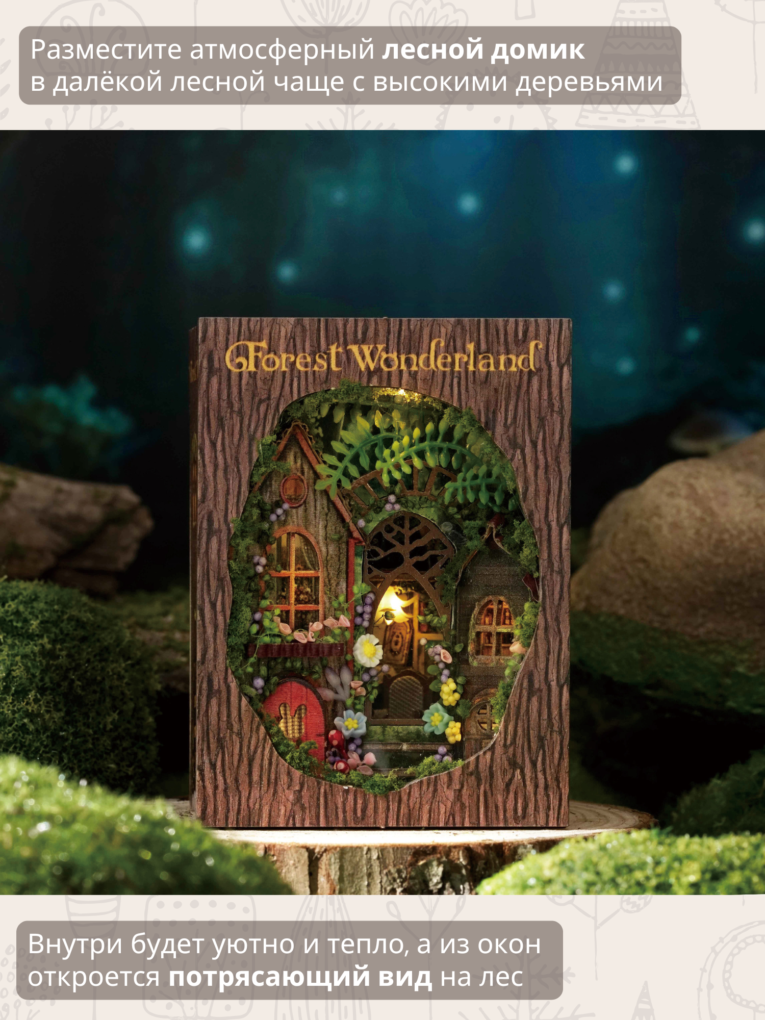 Подарочный Интерьерный конструктор (Румбокс Book-Nook) Yarvita в книге "Лесная Рапсодия" миниатюра DIY House информация: