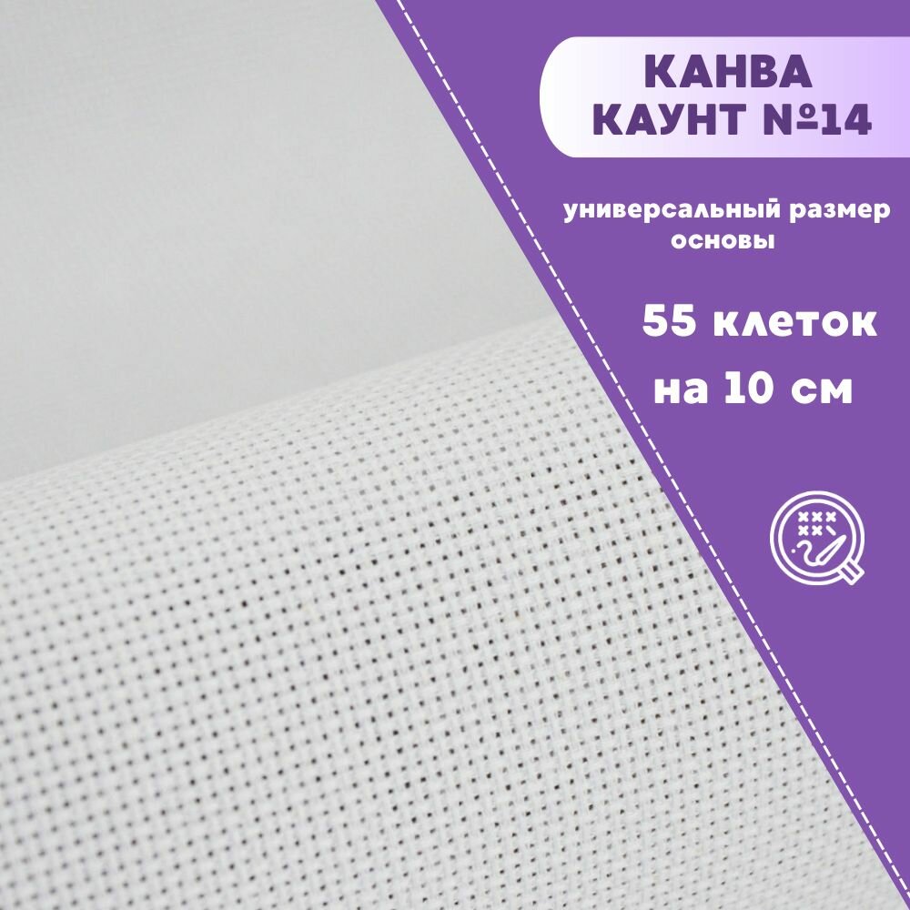 Отзывы на Канва для вышивки, пл. 200 г/м2, цв. белый, размер 14, ш-150 см, на отрез, цена за 0,5 пог. метра.