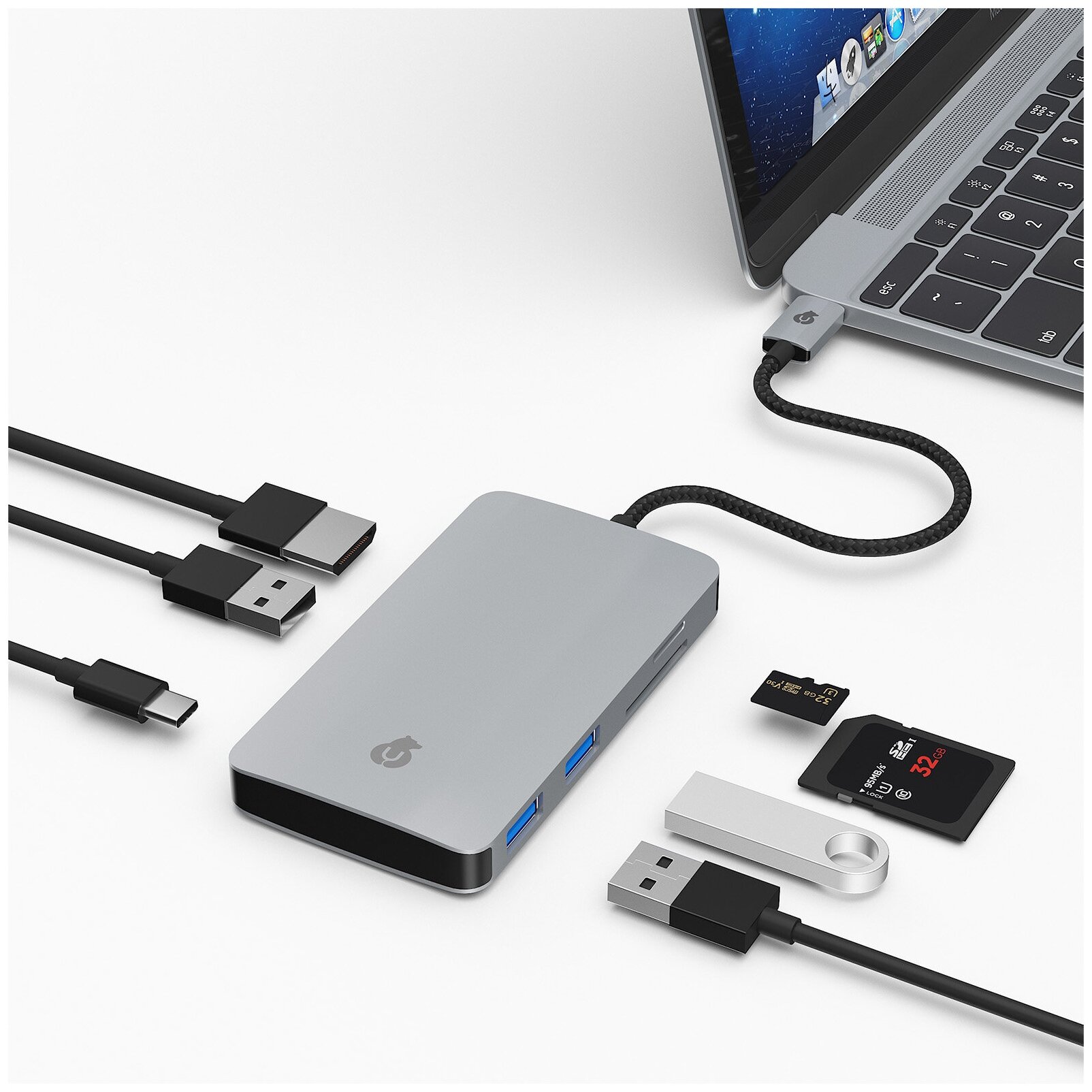 Универсальный адаптер Ubear hub Link 7 in 1 для устройств с разъемом USB-C, цвет: серый