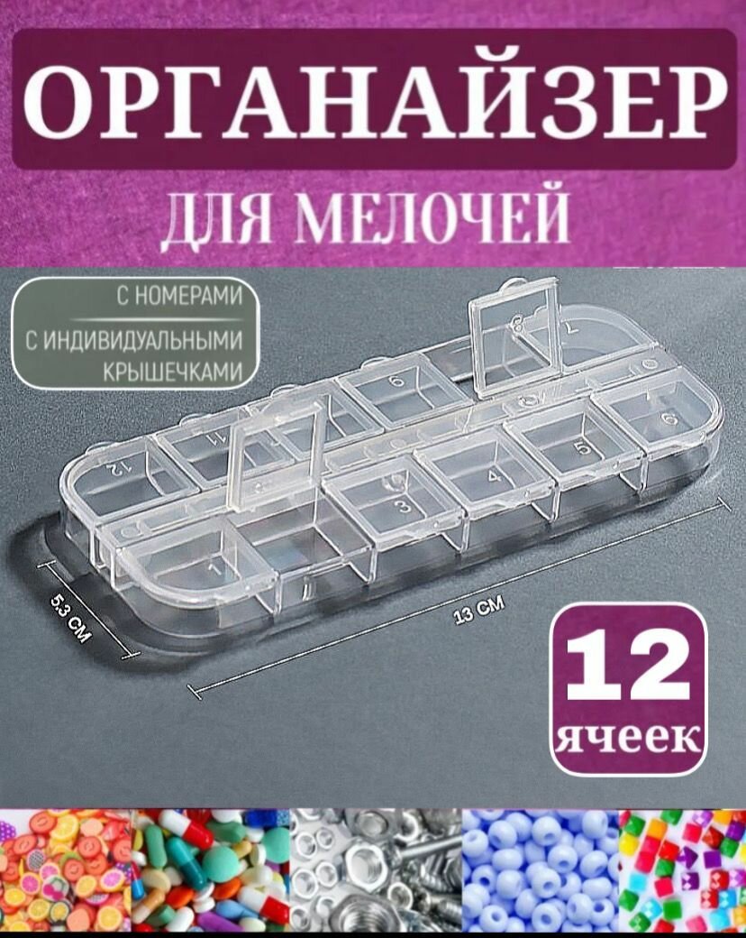 Отзывы на Контейнер для бисера, таблетница, органайзер для мелочей, страз, вышивки, рукоделия, плетения, вязания