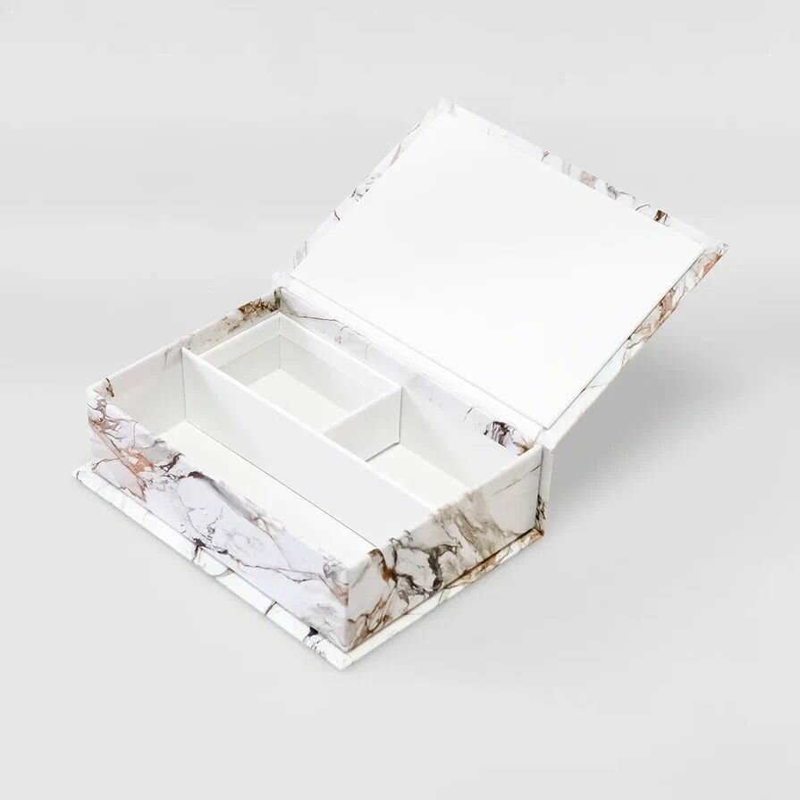 10 цен на Подарочная Коробка - Шкатулка Cartonnage для рукоделия маленькая, 170 x 120 x 50 мм. "Мрамор", белый
