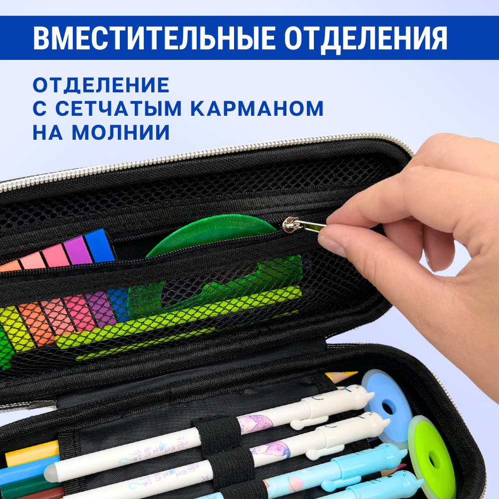 Пенал школьный для мальчиков для карандашей и ручек с 1 отделом, откидной планкой и карманом, канцелярия для школы, EVA, 22х10х5 см, Юнландия, 273187