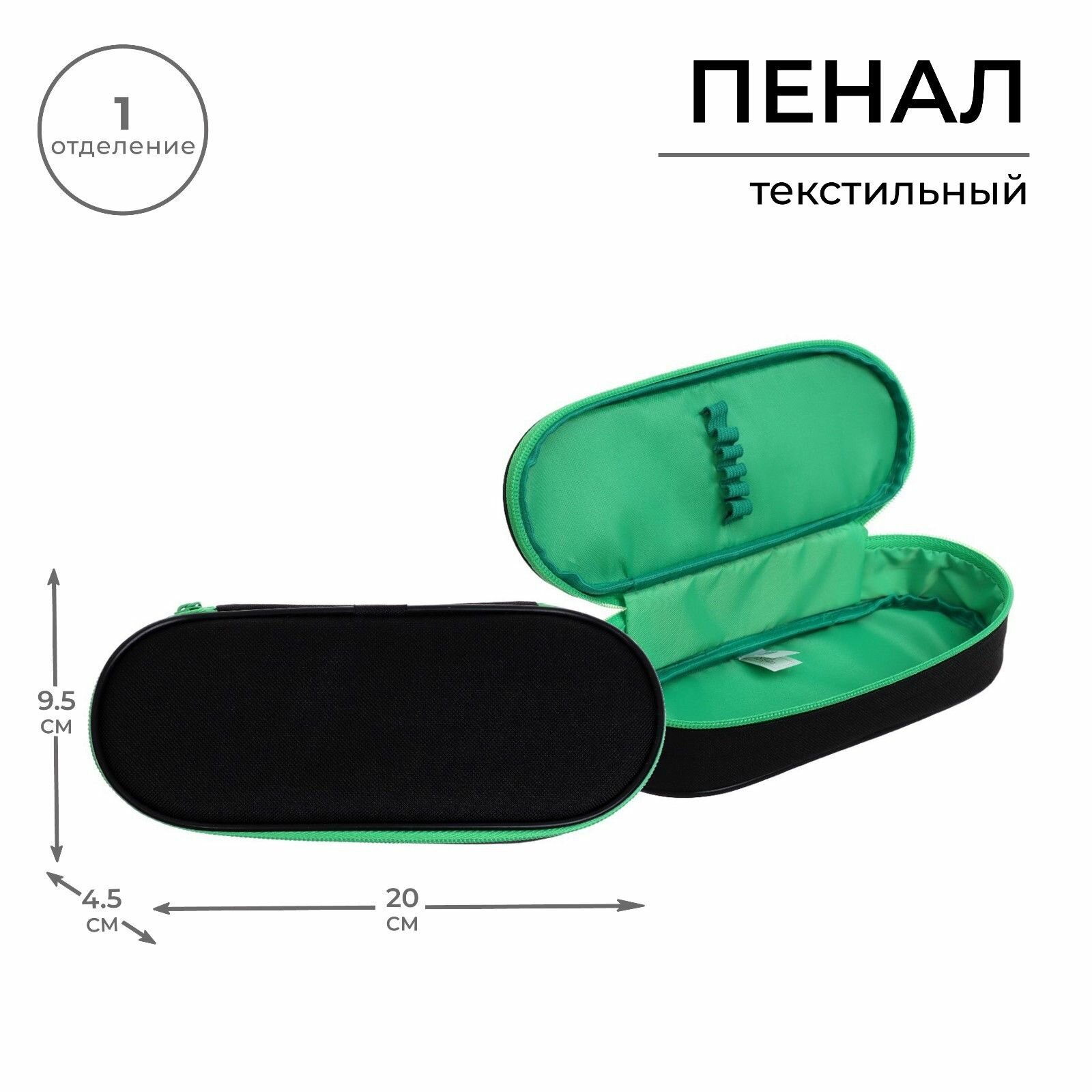 Отзывы на Пенал-футляр, 45 х 205 х 95 мм, мягкий, тканевый, Calligrata, ПМК 27-20 Black, резинка на клапане, черный/зелёный