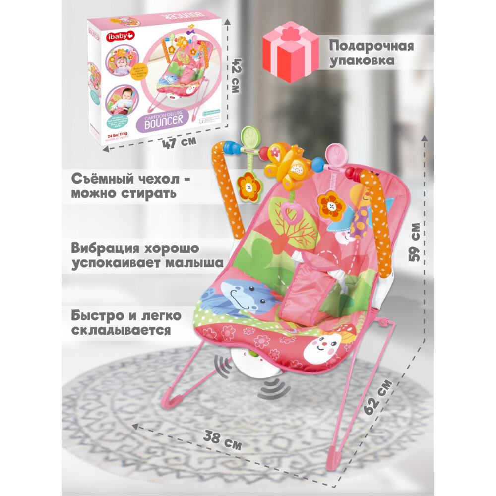 Детский шезлонг кресло розовый с вибрацией, до 11 кг, дуга с погремушками, музыкальная игрушка информация: