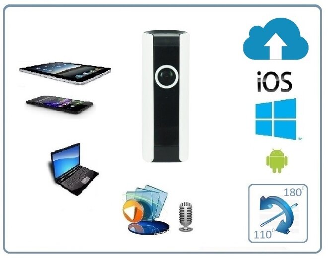 Видеоняня /WiFi IP видеокамера панорамная 180*110* с DVR (fish-BW_v.2), HD (360EyeS) информация: