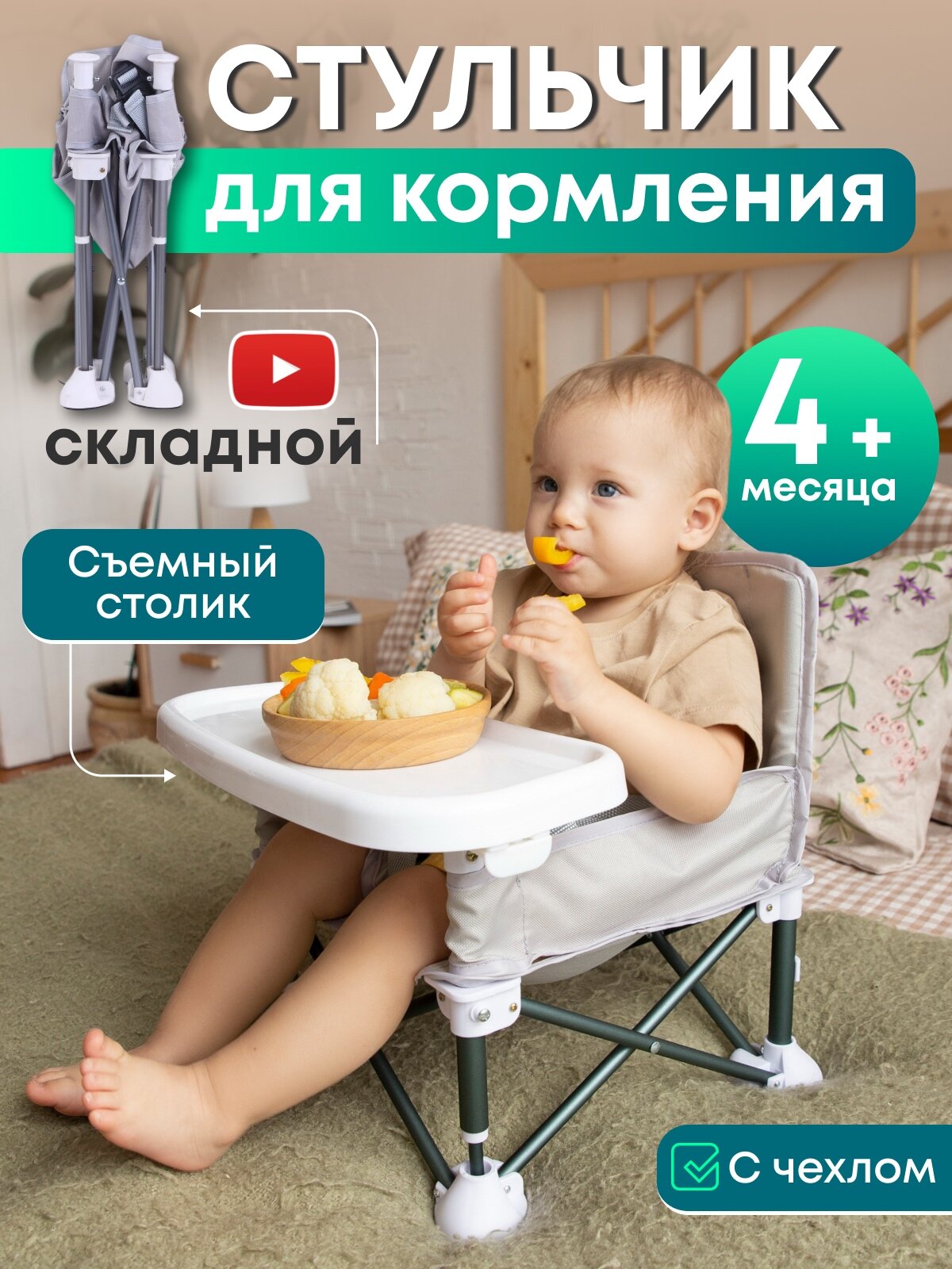 Стул для кормления складной с чехлом и карманом с 6 месяцев, серый информация: