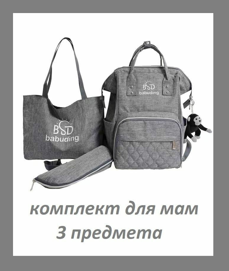 Рюкзак для мам + Сумка на плечо + Сумочка для детских бутылочек / Комбинированный комплект из 3 предметов Morento серый информация: