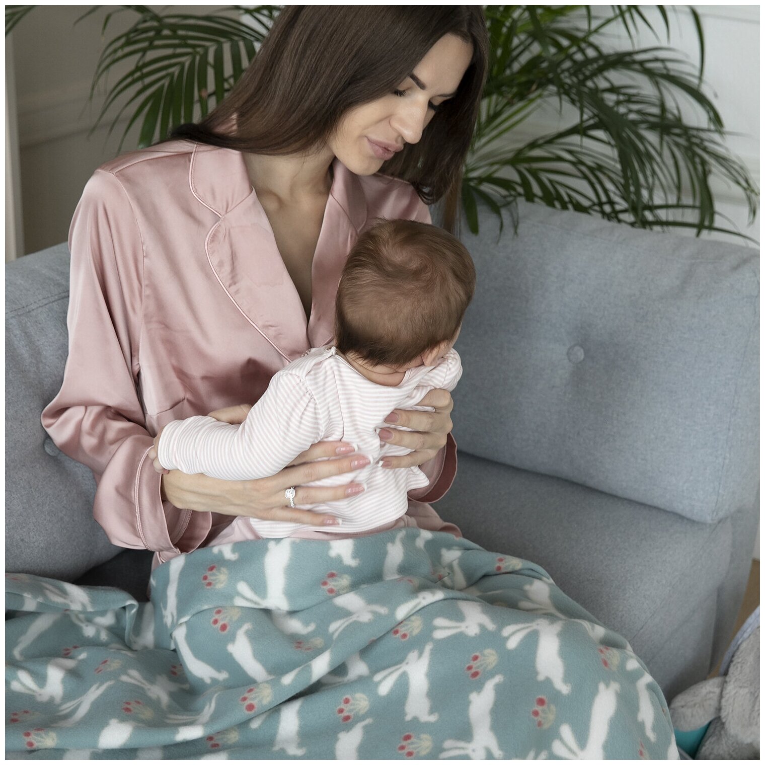 Плед для новорожденного 100х118 флисовый детский в кроватку , коляску, "Любимый кролик ", серый с зайками 416 ₽