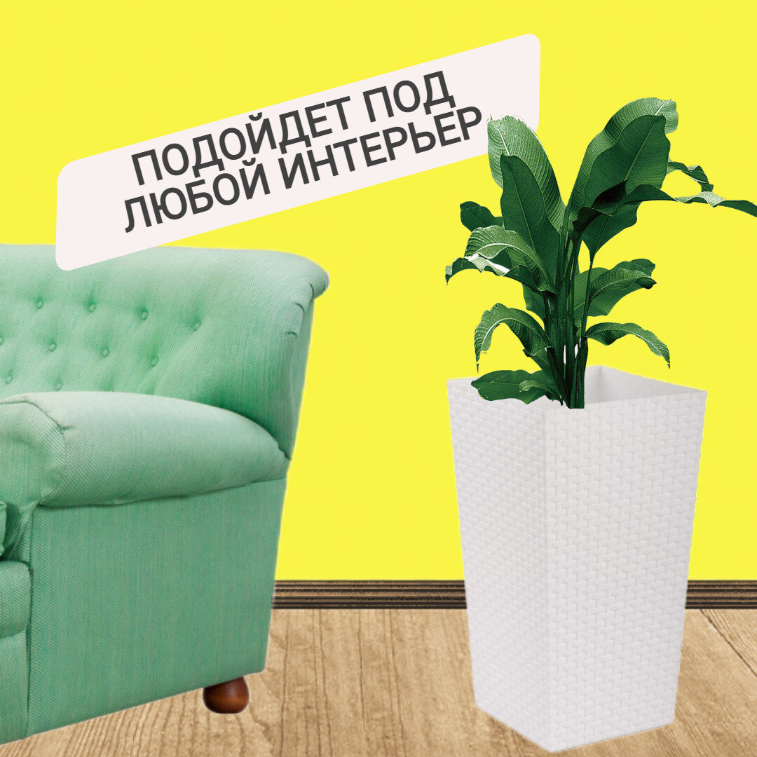 Кашпо напольное со вставкой Ротанг 15л белый