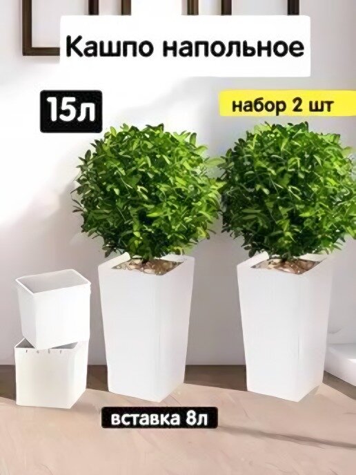 Комплект из 2шт кашпо напольное со вставкой Ротанг 15л белый информация: