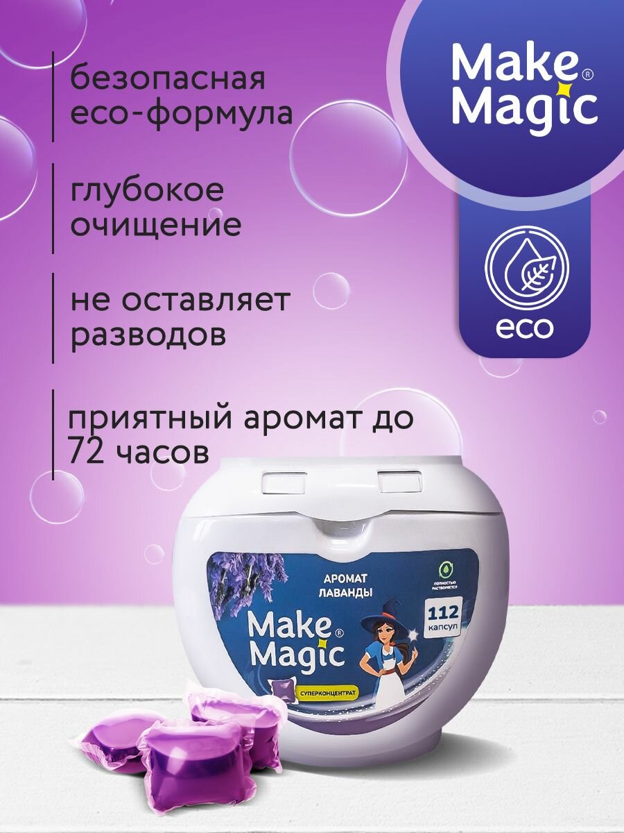 | Способ применения | просто положить в барабан стиралки автомат. Пленка бытового средства полностью растворяется при контакте с водой не оставляя разводов. Безопасная ЕСО формула без вредных добавок, синтетических отбеливателей экологически чисто и бережно глубоко очищает ткань на молекулярном уровне, делая ее мягче, возвращая первоначальный цвет, а аромат лаванды надолго сохранит свежесть белья |