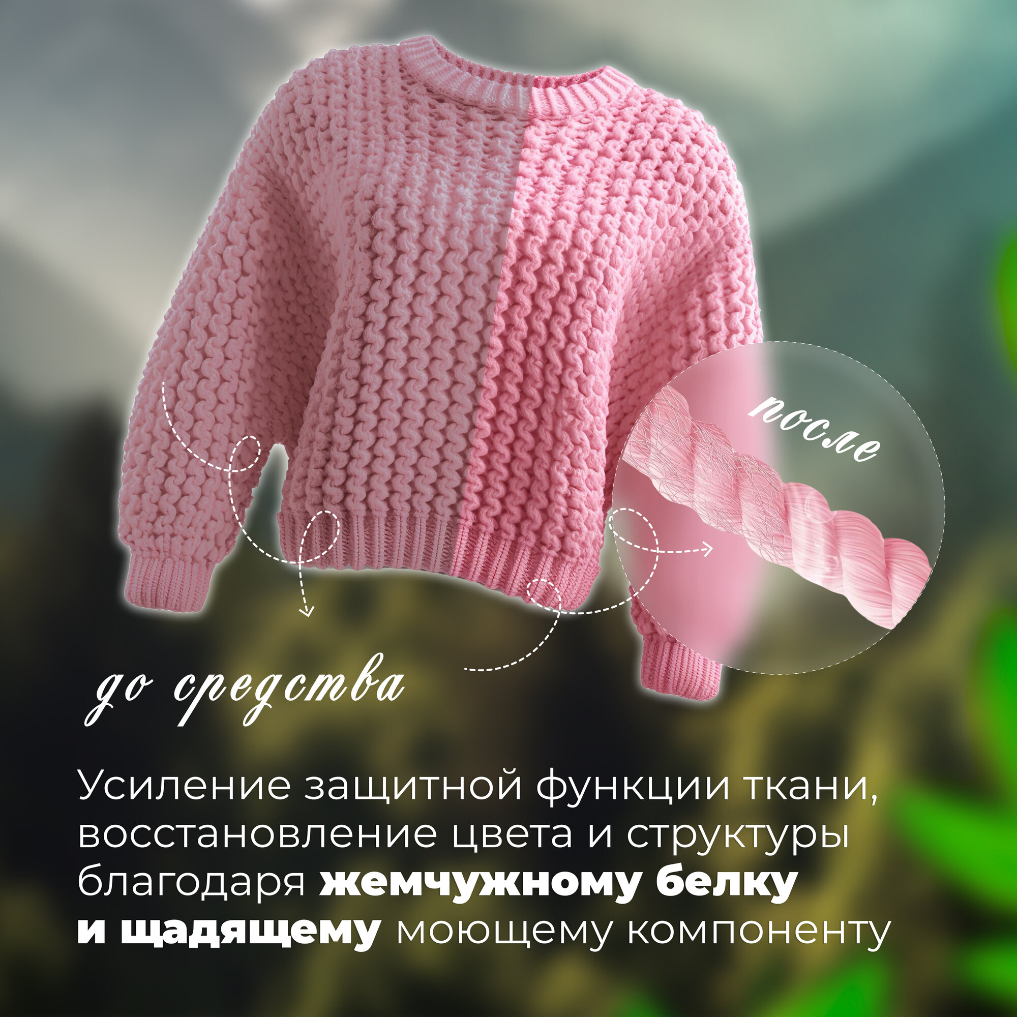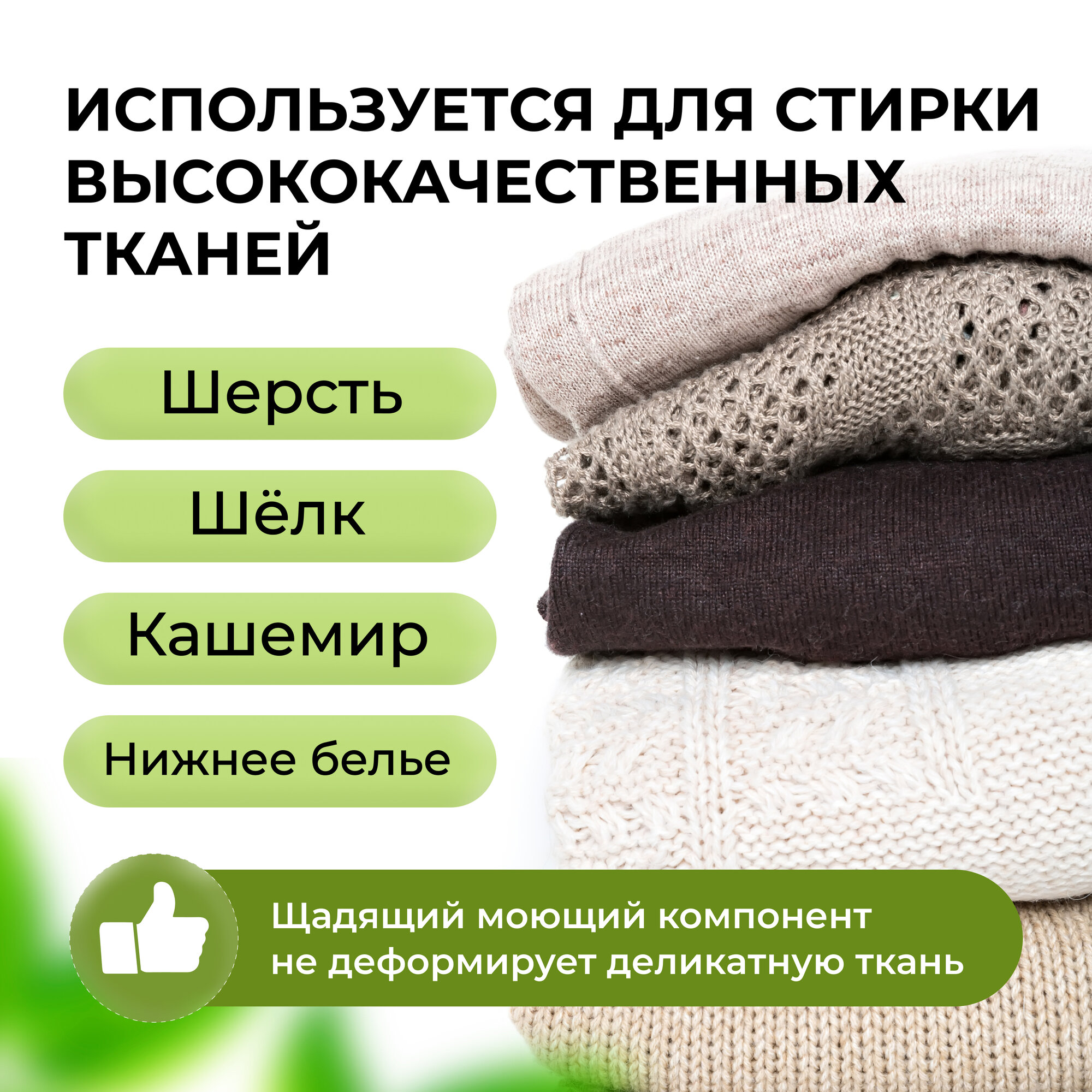 | Способ применения | Перед стиркой убедитесь, можно ли стирать белье в воде. Залейте стандартное количество. Стирайте в режиме для шерсти или же в самом слабом режиме. При ручной стирке: В чуть теплую воду градусов 30 добавьте стандартное количество средства. Замочите белье на 3 минуты, потрите несильно руками и ополосните. |