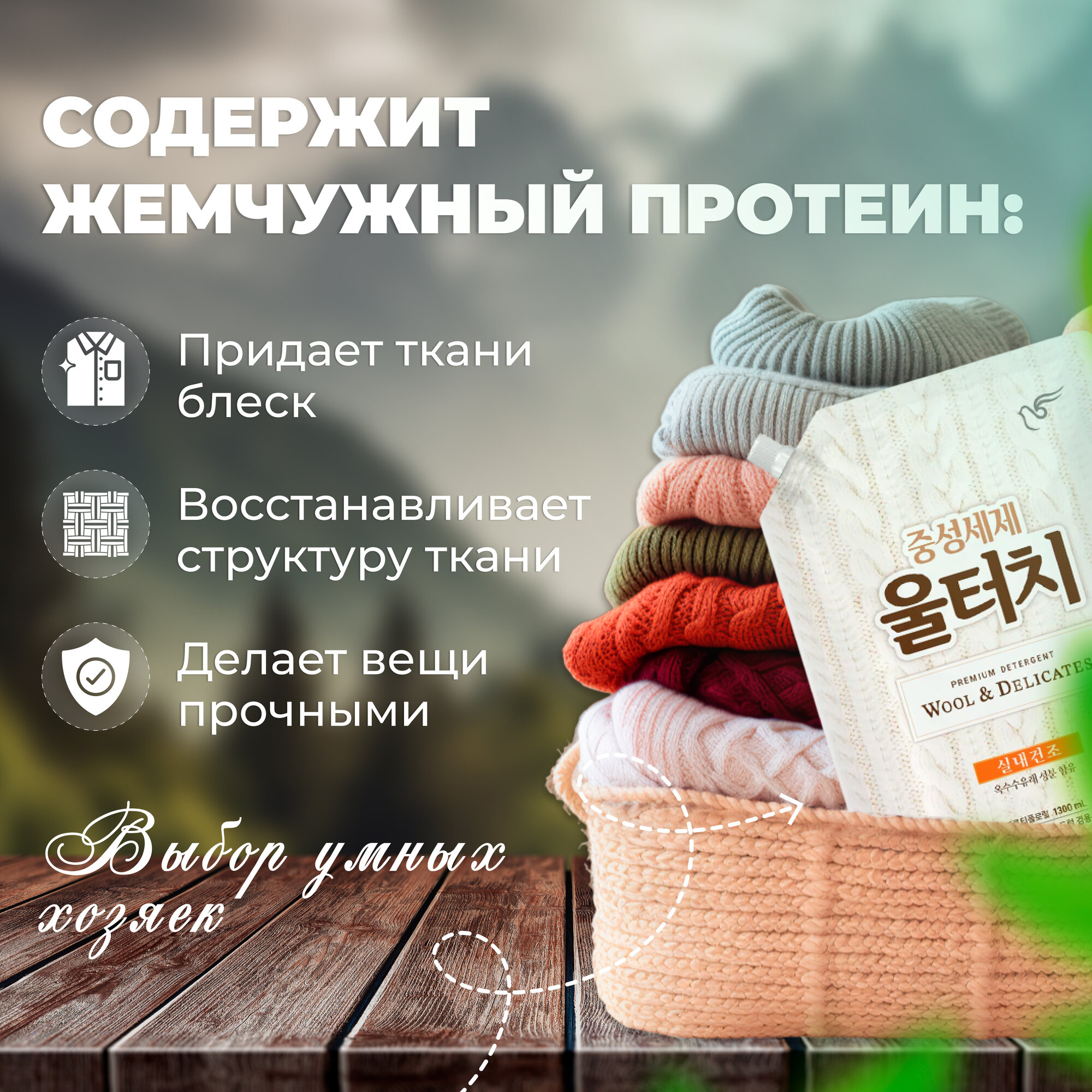 Pigeon Гель для стирки универсальный для шерстяных и деликатных тканей Wool Touch Soft Pearl, 1.3 л, Корея информация: