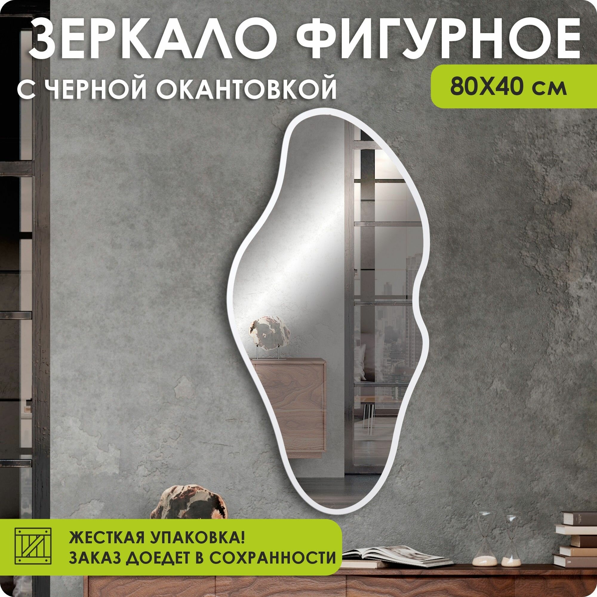 Зеркало настенное, зеркало, 80х40 фигурное, белое информация: