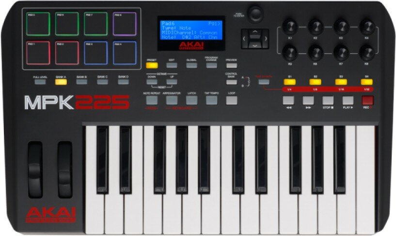 AKAI PRO MPK225 USB миди клавиатура 25 клавиш, 8 пэдов, 8 ручек 32 000 ₽