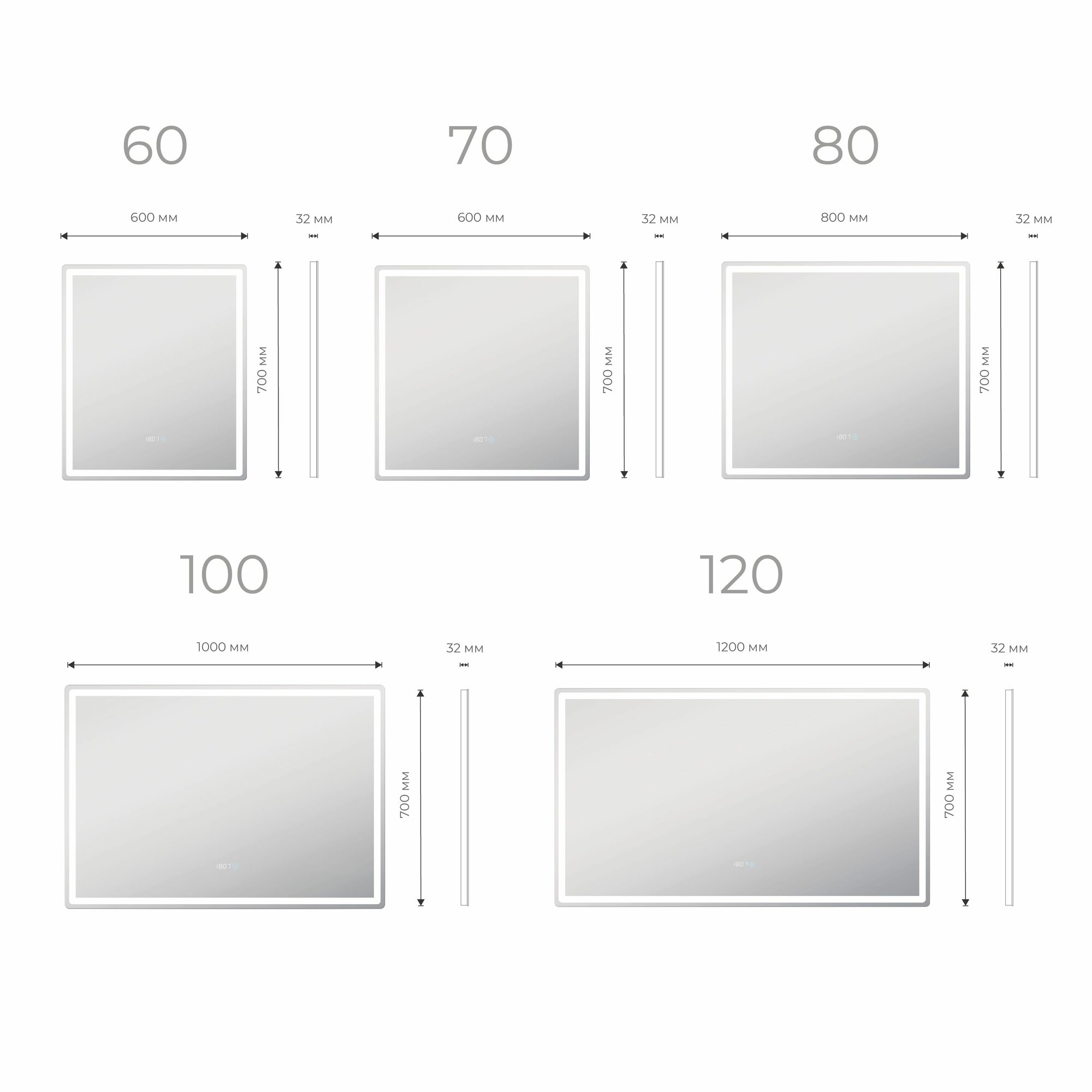 Зеркало настенное для ванной КерамаМане 70*100 см с холодной подсветкой 6000 К с сенсорной кнопкой