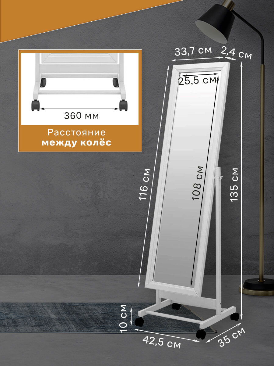 Зеркало напольное BeautyStyle 27 белый 135 см х 42,5 см 8 825 ₽